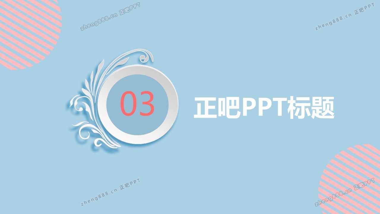 欢迎您访问【正吧PPT】,我们致力于为设计师和泛办公人群提供分享PPT作品。内容涵盖了商业策划、报告总结、教育培训、公务党建等方面的演示模板