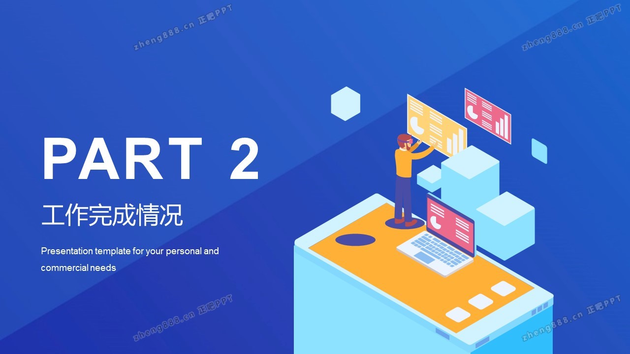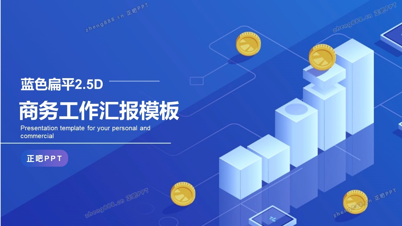 蓝色扁平2.5D 商务工作汇报PPT模板
