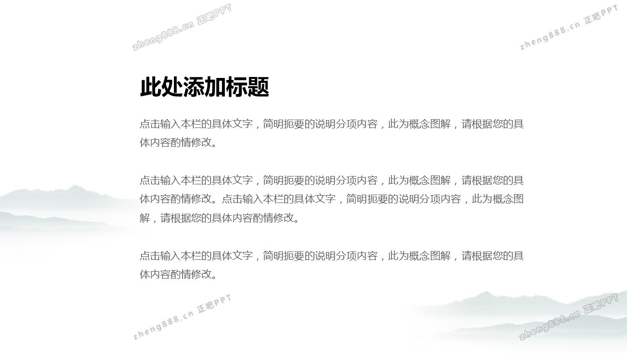 水墨山水图清新中国风工作汇报总结通用PPT模板