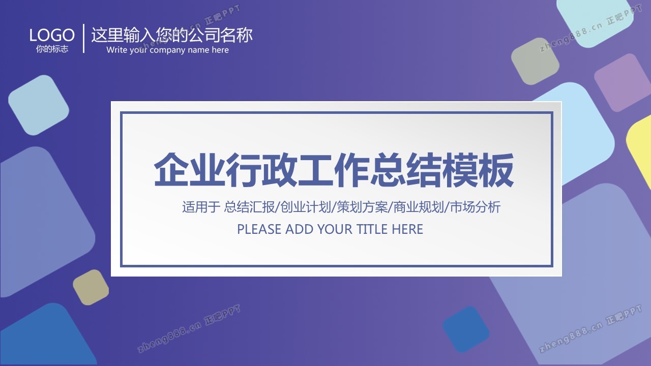 几何风企业行政工作总结PPT模板