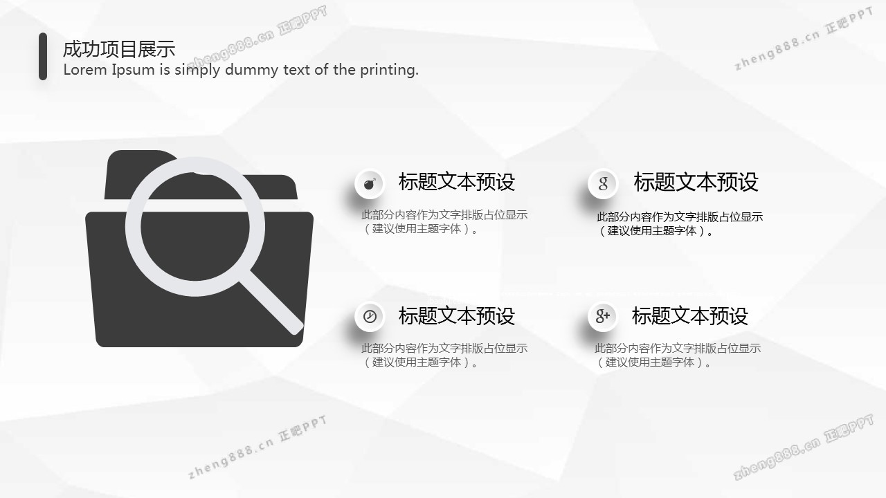 欢迎您访问【正吧PPT】,我们致力于为设计师和泛办公人群提供分享PPT作品。内容涵盖了商业策划、报告总结、教育培训、公务党建等方面的演示模板
