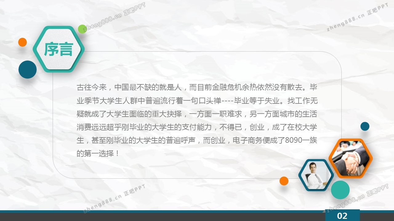 欢迎您访问【正吧PPT】,我们致力于为设计师和泛办公人群提供分享PPT作品。内容涵盖了商业策划、报告总结、教育培训、公务党建等方面的演示模板
