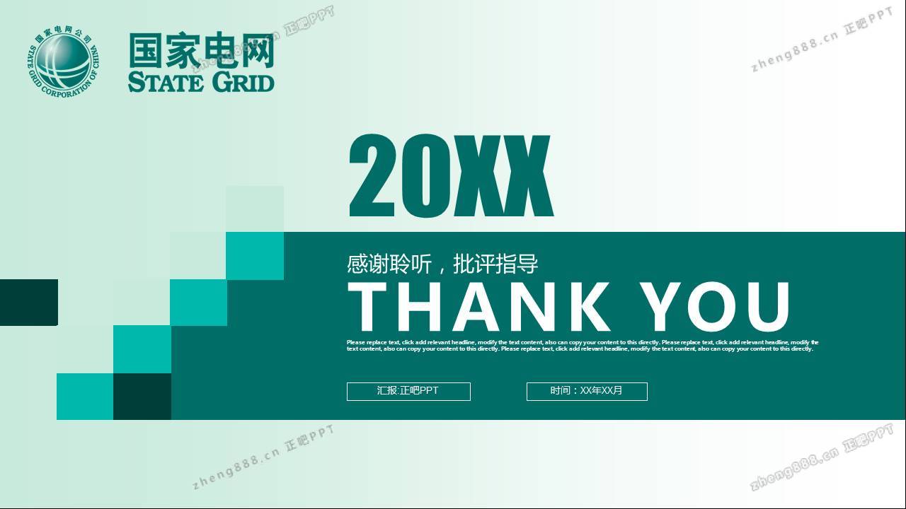 绿色简约创意图形国家电网PPT模板