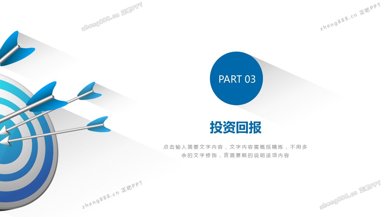 蓝色箭头命中靶心背景的商务汇报PPT模板