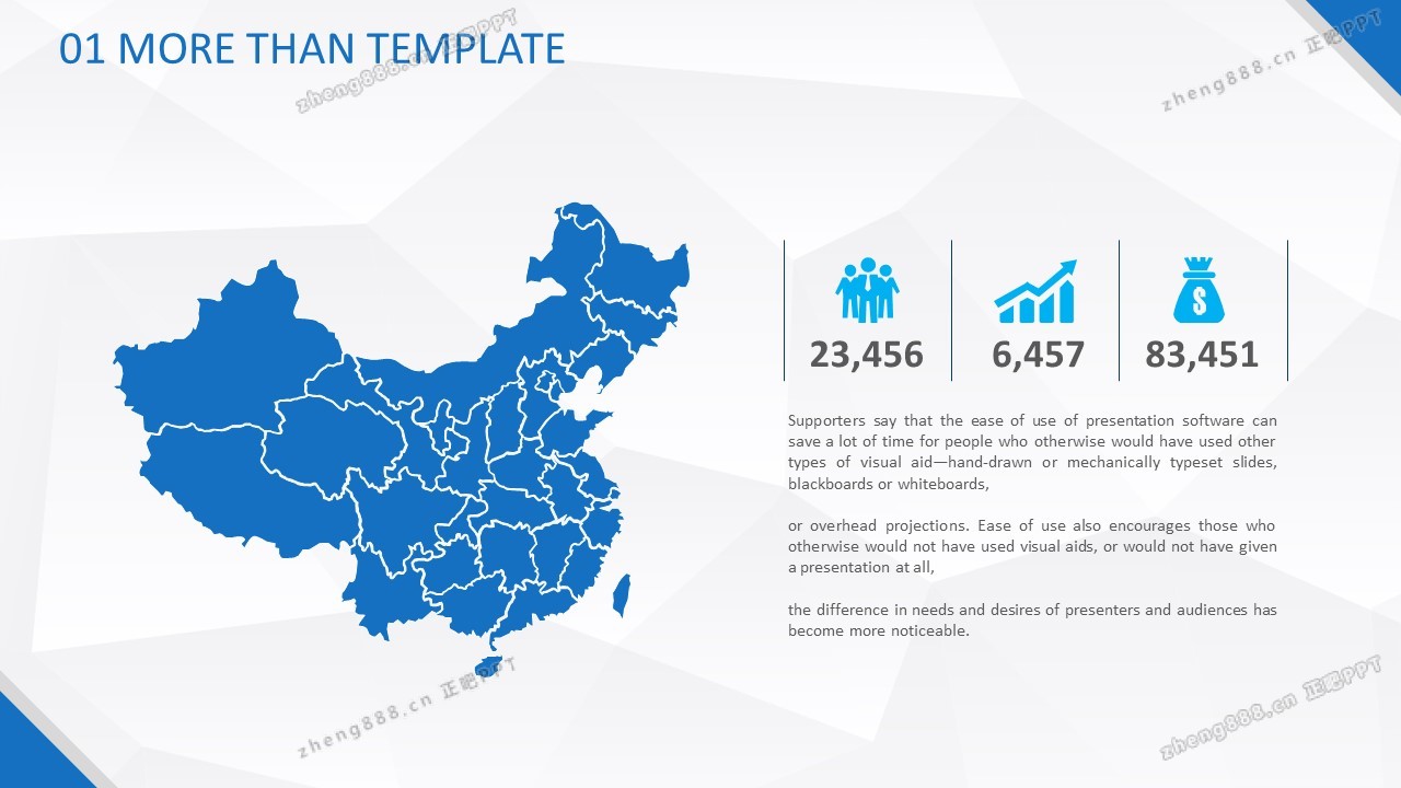 欢迎您访问【正吧PPT】,我们致力于为设计师和泛办公人群提供分享PPT作品。内容涵盖了商业策划、报告总结、教育培训、公务党建等方面的演示模板