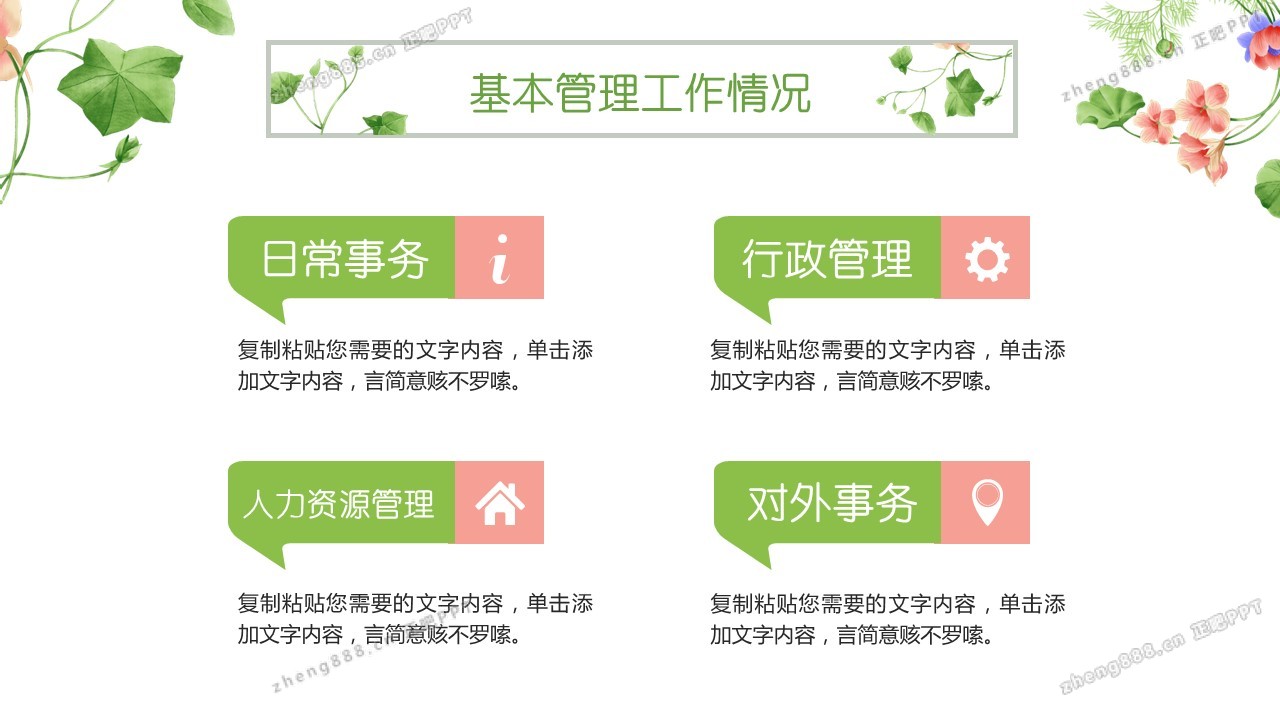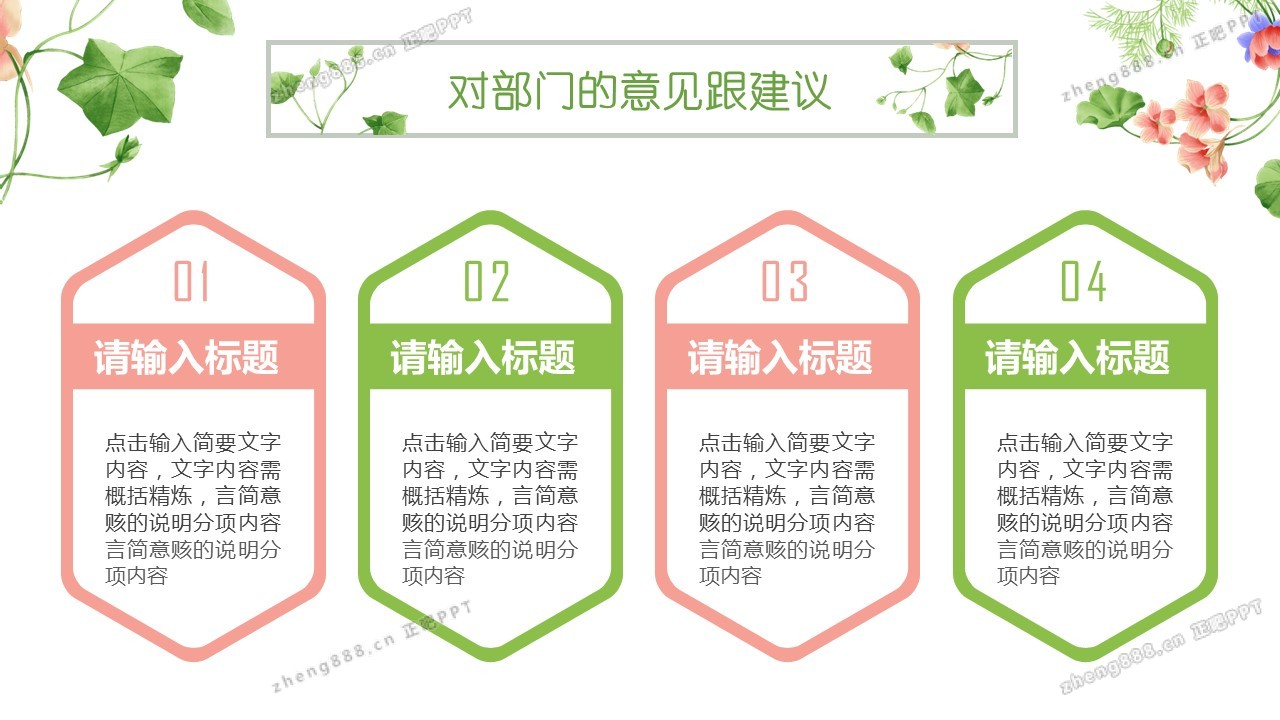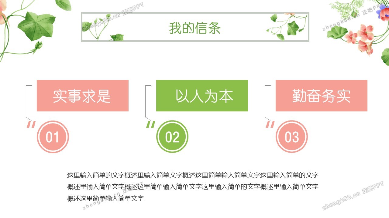 藤蔓绿叶花朵背景的清新夏日PPT模板