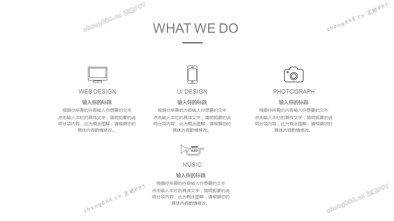 欢迎您访问【正吧PPT】,我们致力于为设计师和泛办公人群提供分享PPT作品。内容涵盖了商业策划、报告总结、教育培训、公务党建等方面的演示模板