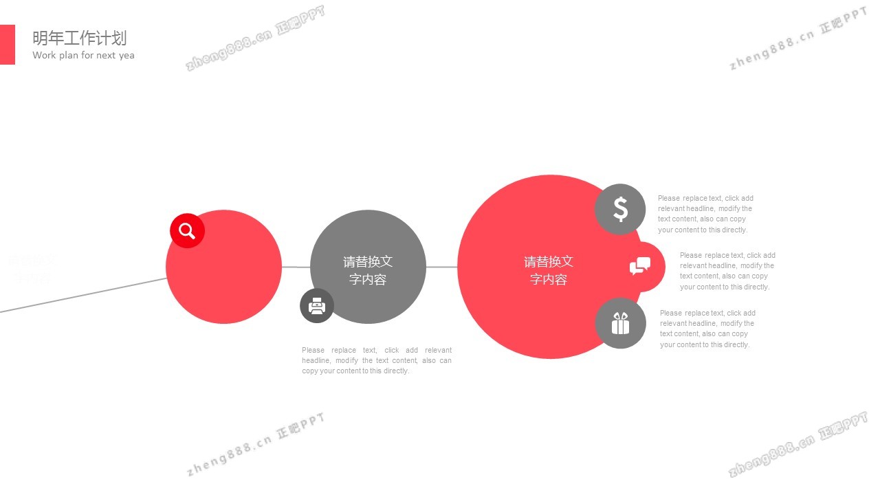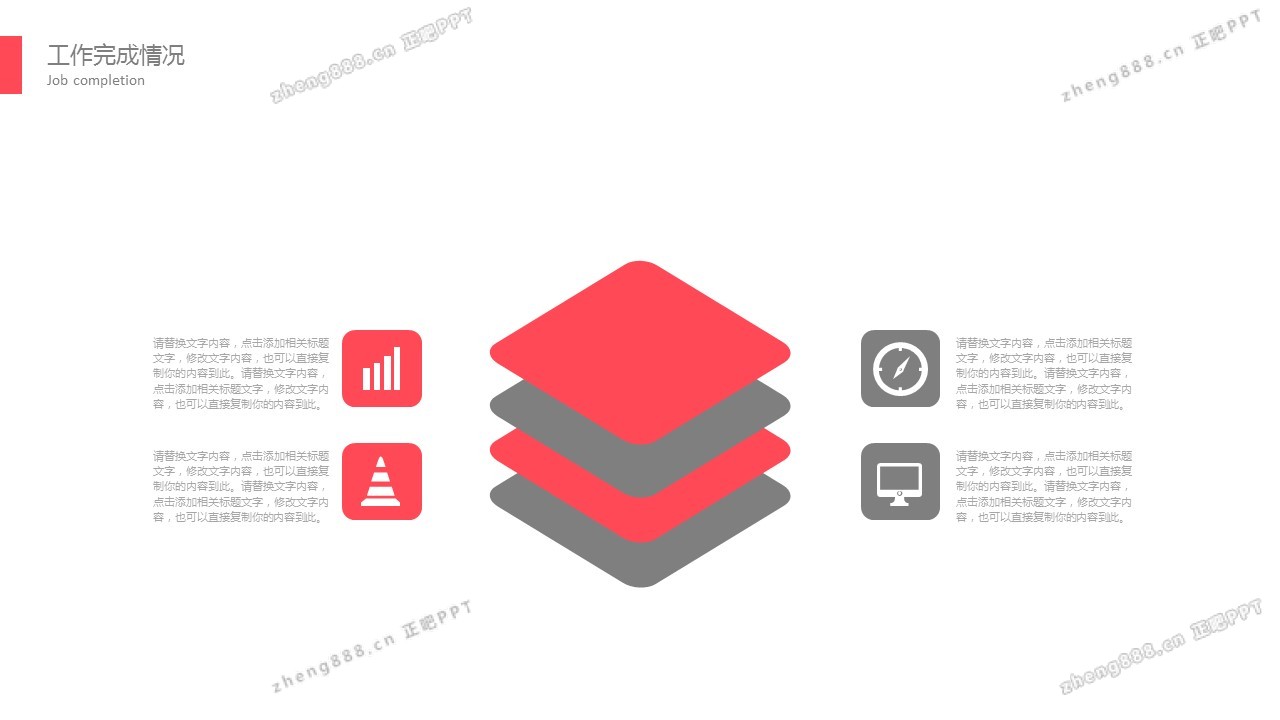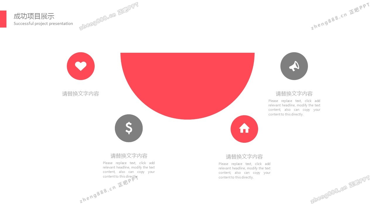 简洁红灰圈边风格通用商务PPT模板