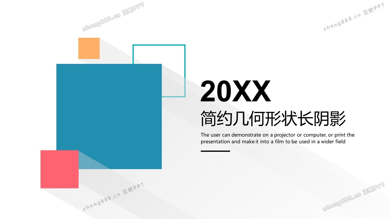 简洁彩色扁平化正方形背景PPT模板