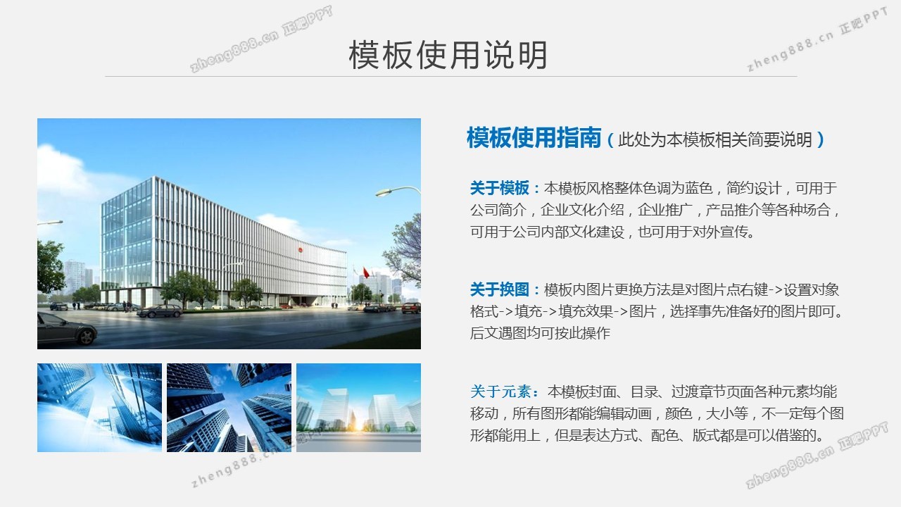 蓝色简洁实用的企业宣传公司简介PPT模板