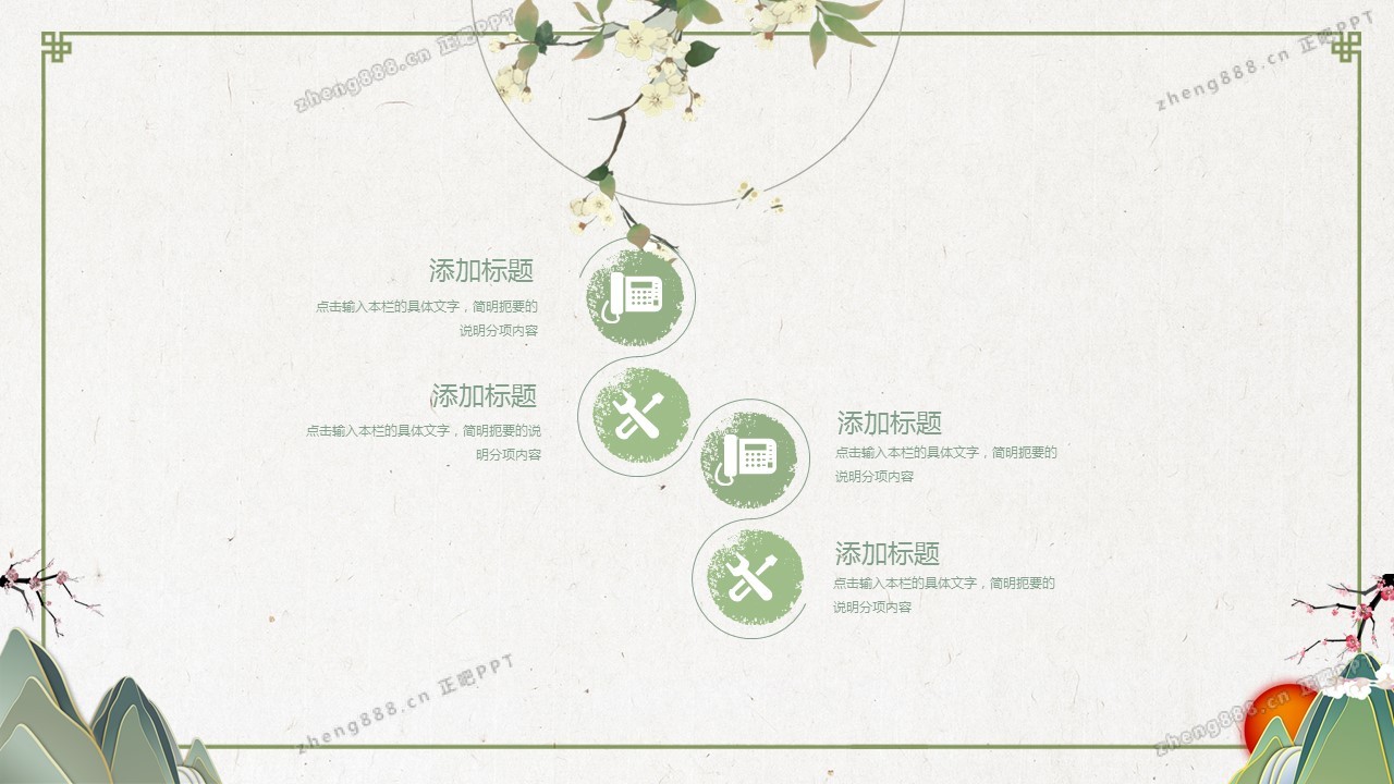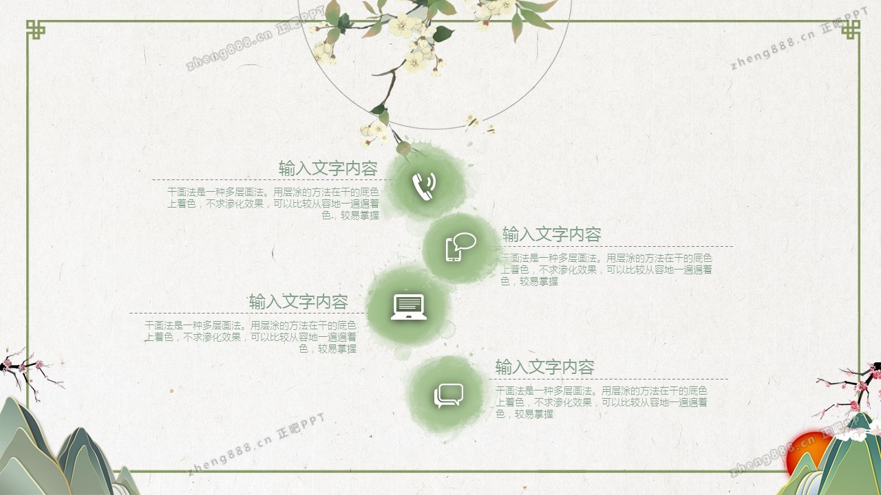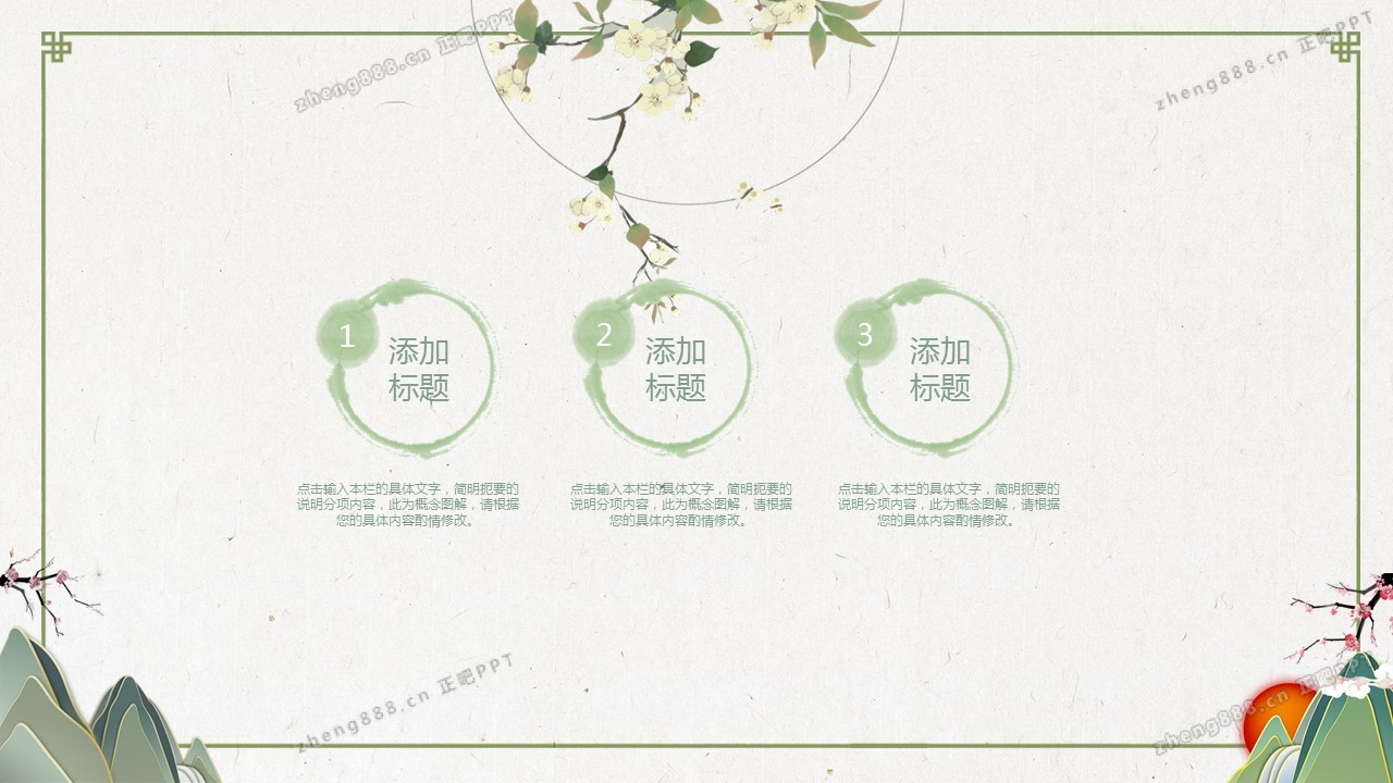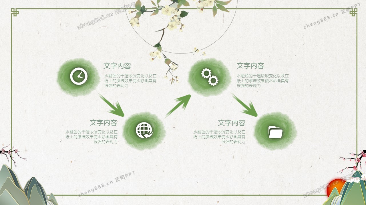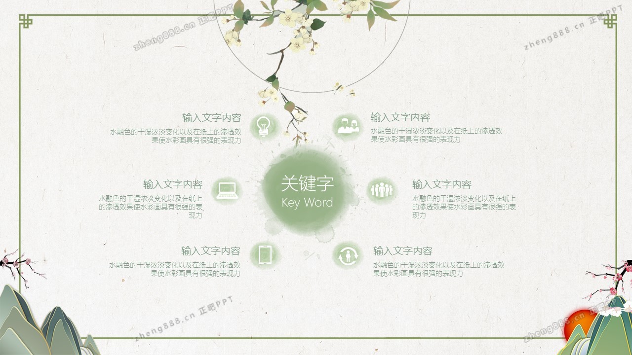 淡雅绿色清新水墨中国风PPT模板
