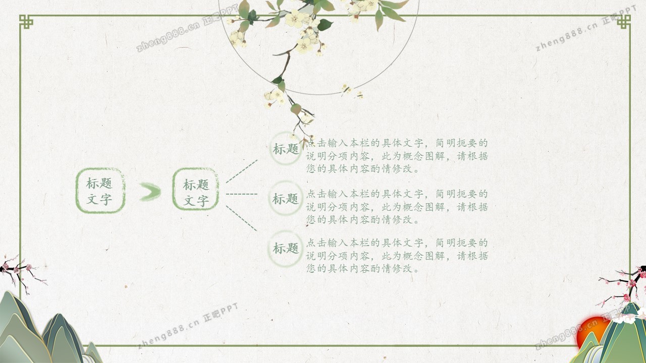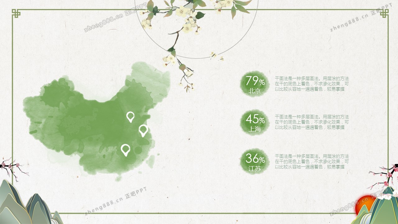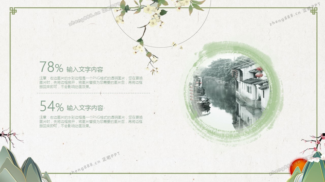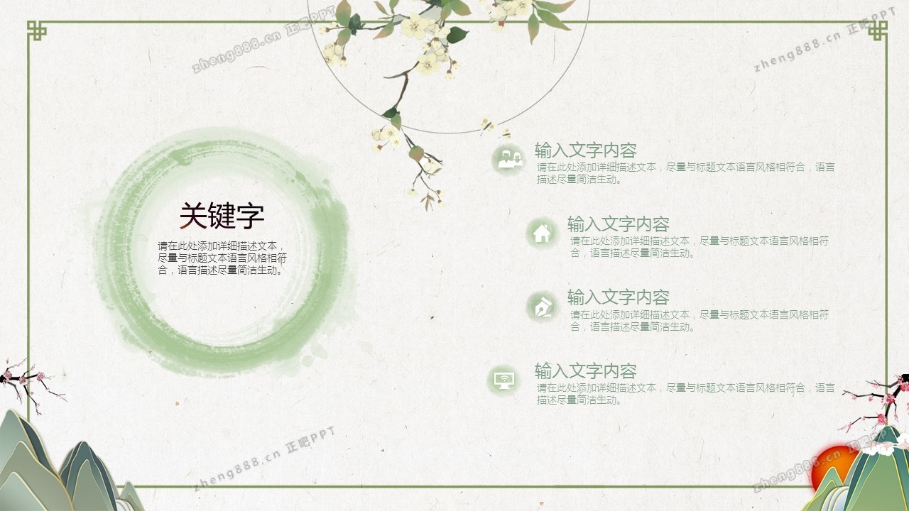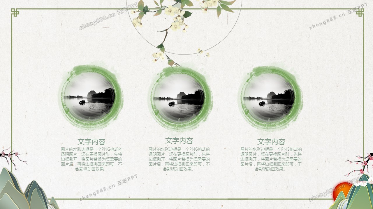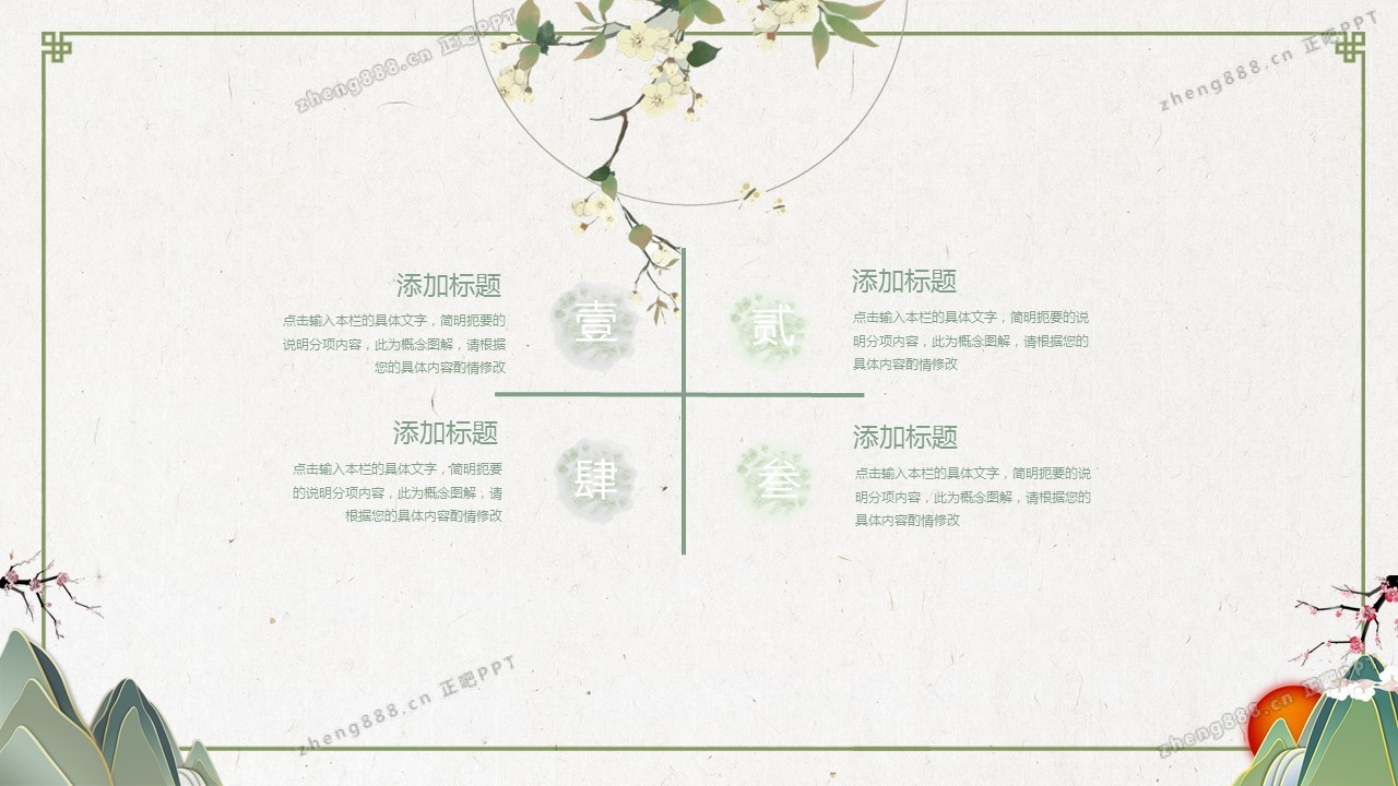 淡雅绿色清新水墨中国风PPT模板