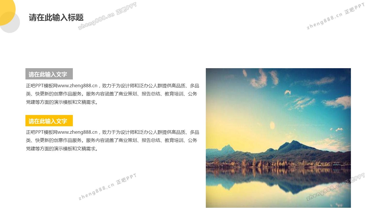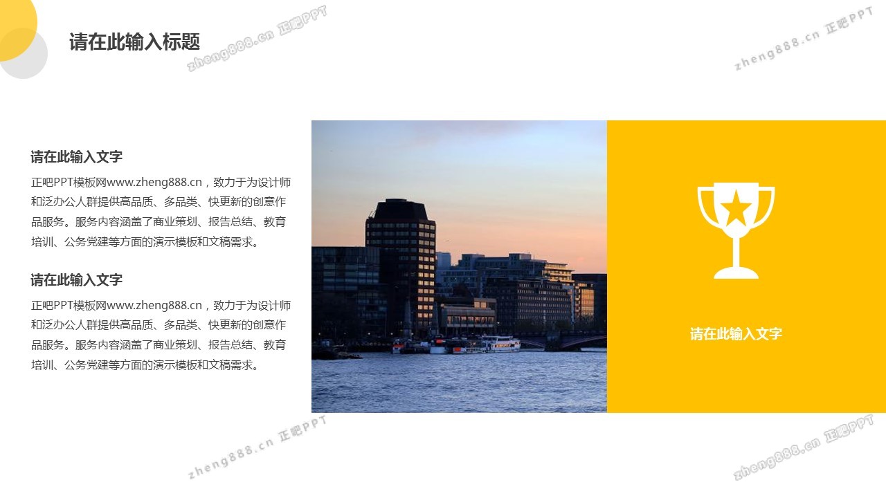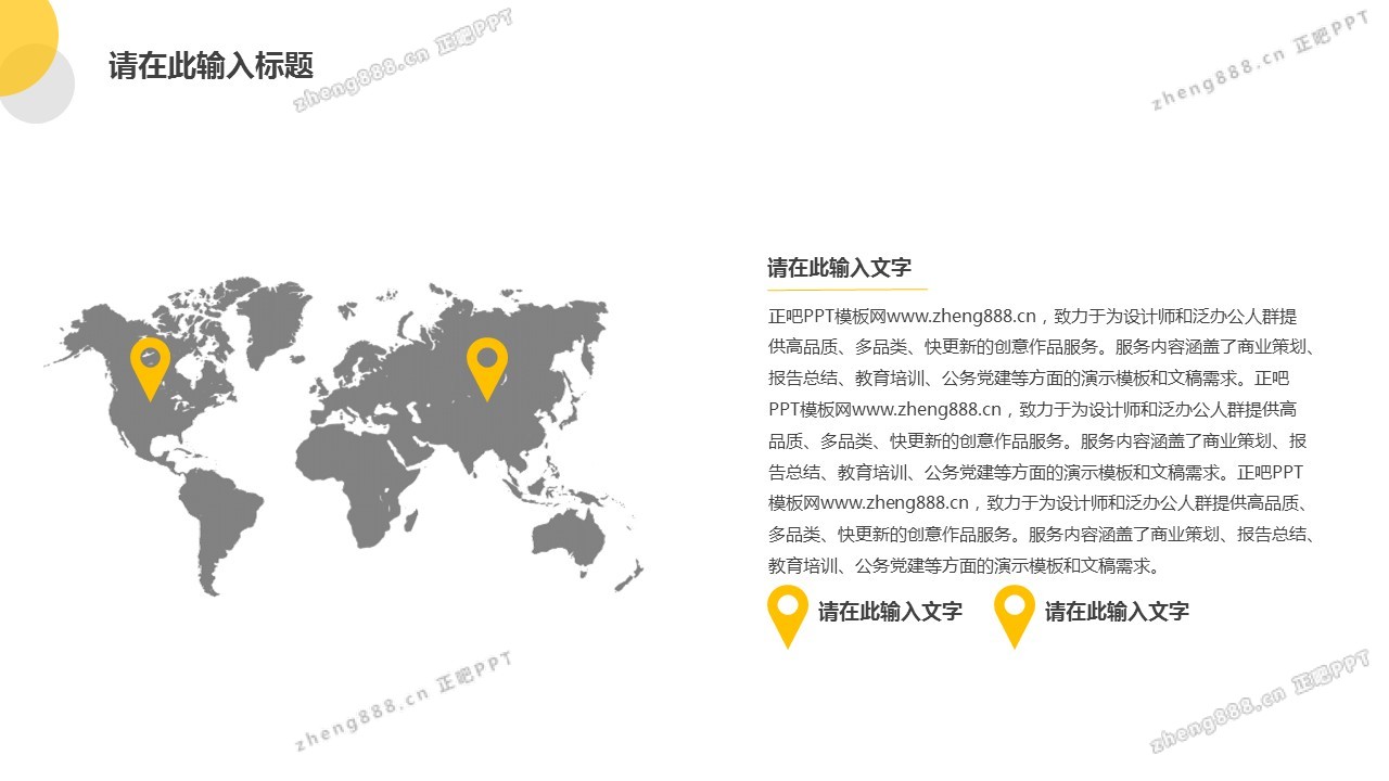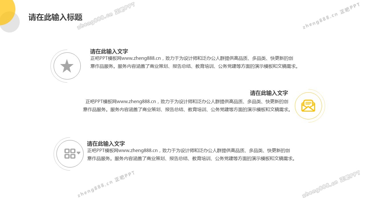 欢迎您访问【正吧PPT】,我们致力于为设计师和泛办公人群提供分享PPT作品。内容涵盖了商业策划、报告总结、教育培训、公务党建等方面的演示模板