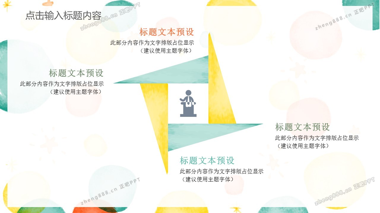 欢迎您访问【正吧PPT】,我们致力于为设计师和泛办公人群提供分享PPT作品。内容涵盖了商业策划、报告总结、教育培训、公务党建等方面的演示模板