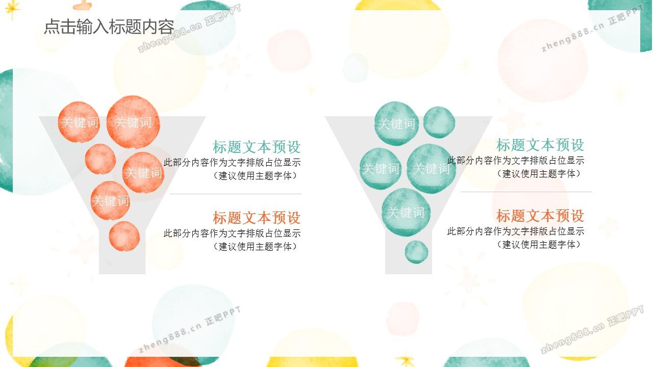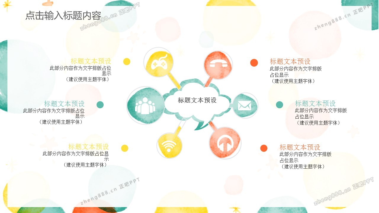 五彩气泡背景的卡通PPT模板