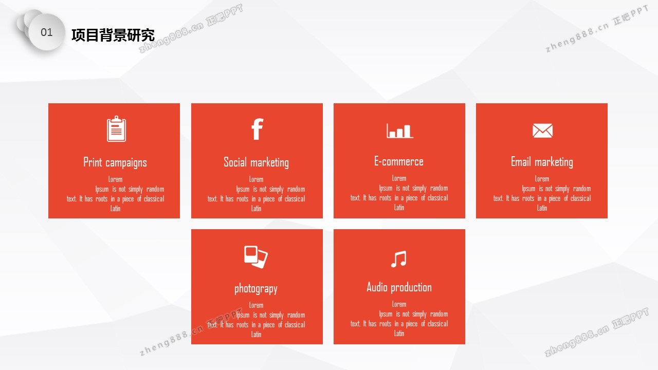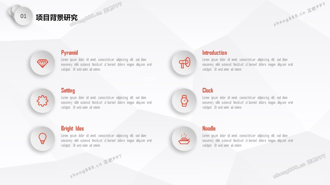 欢迎您访问【正吧PPT】,我们致力于为设计师和泛办公人群提供分享PPT作品。内容涵盖了商业策划、报告总结、教育培训、公务党建等方面的演示模板