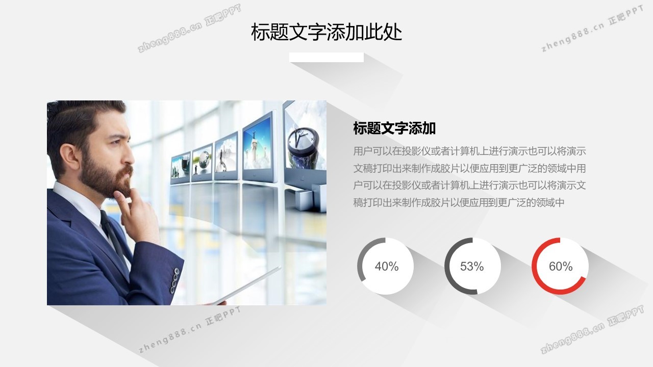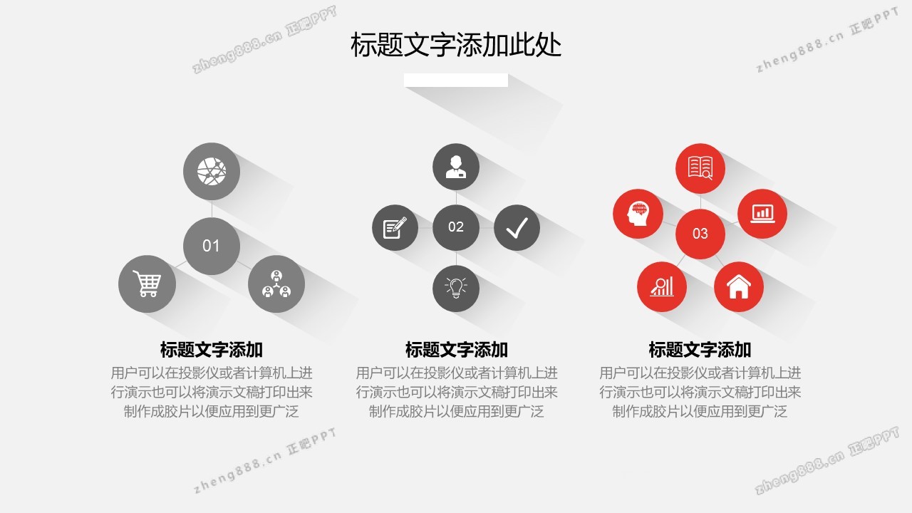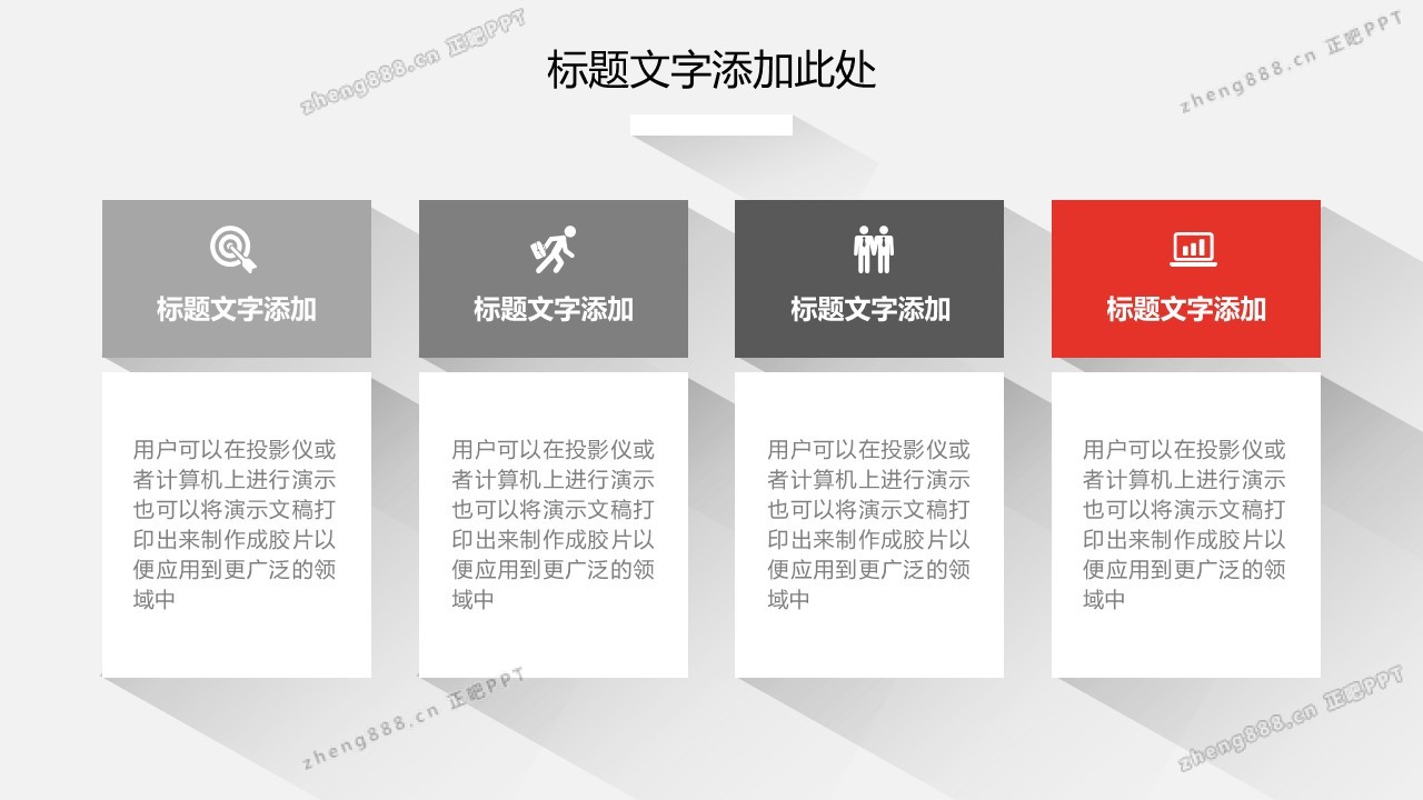 灰色阴影设计的简洁扁平化通用商务PPT模板