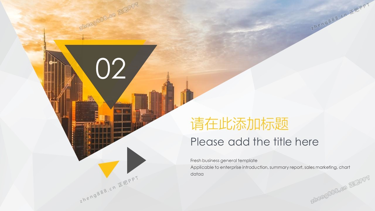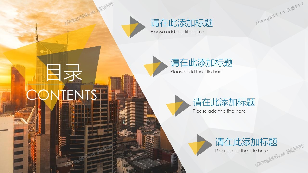 城市建筑背景的简约杂志风格通用商务PPT模板