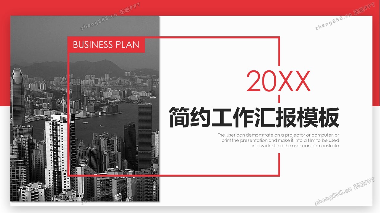 城市建筑背景的简约杂志风格通用商务PPT模板