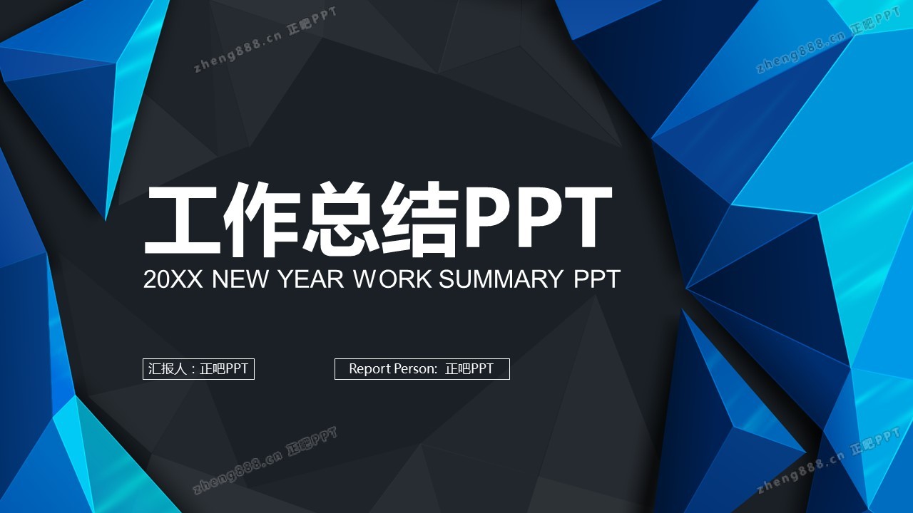 蓝色立体多边形背景工作总结PPT模板