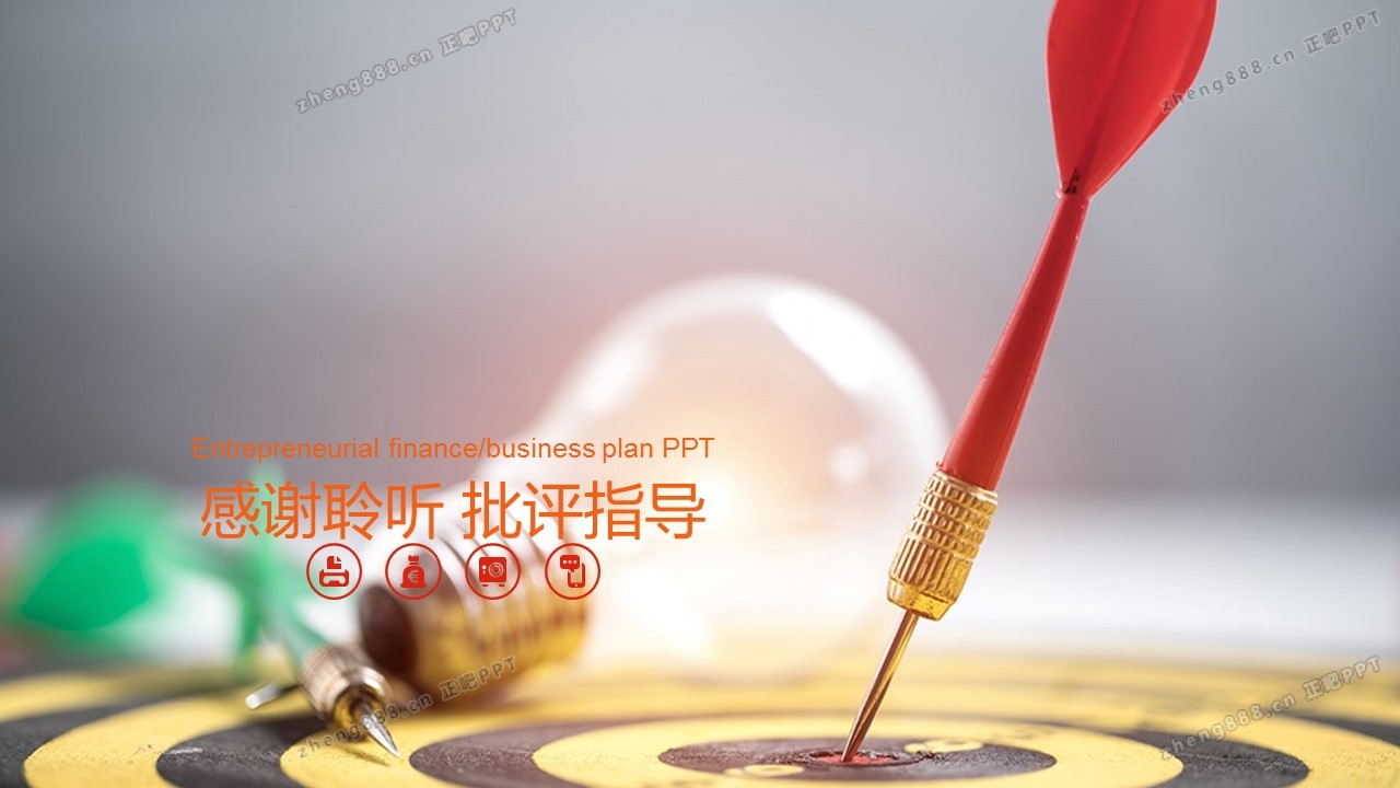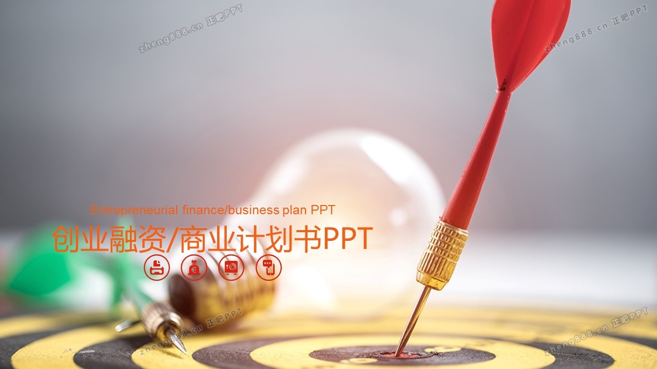 飞镖命中靶心背景的创业融资计划书PPT模板