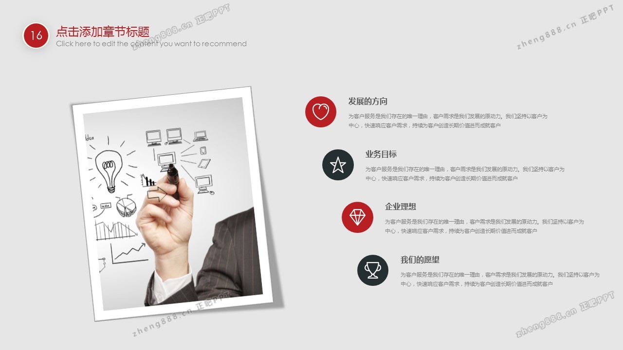 欢迎您访问【正吧PPT】,我们致力于为设计师和泛办公人群提供分享PPT作品。内容涵盖了商业策划、报告总结、教育培训、公务党建等方面的演示模板