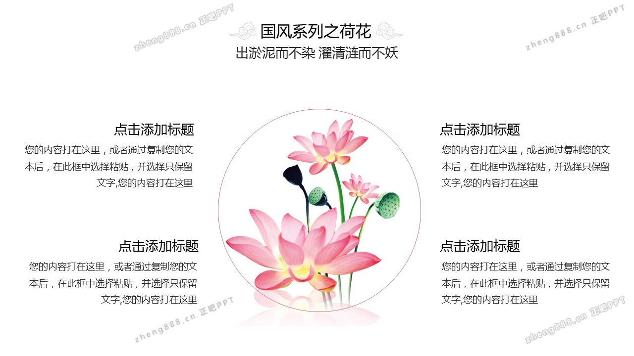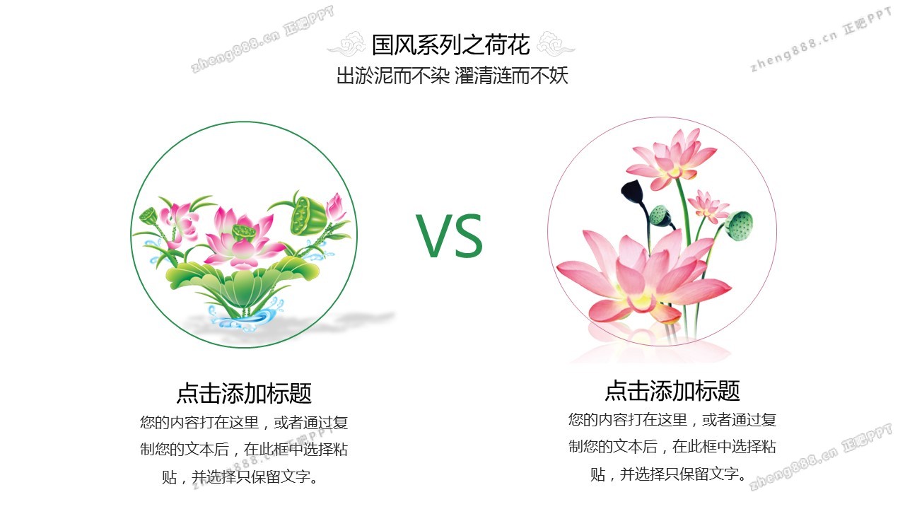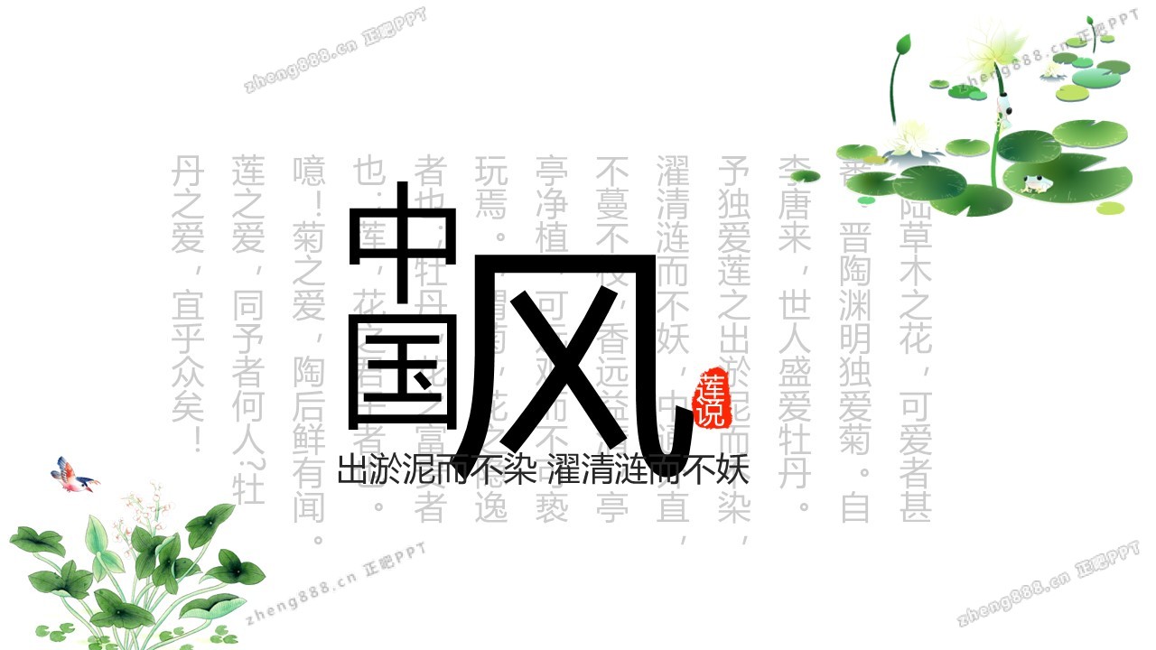 矢量莲花背景的清新中国风PPT模板
