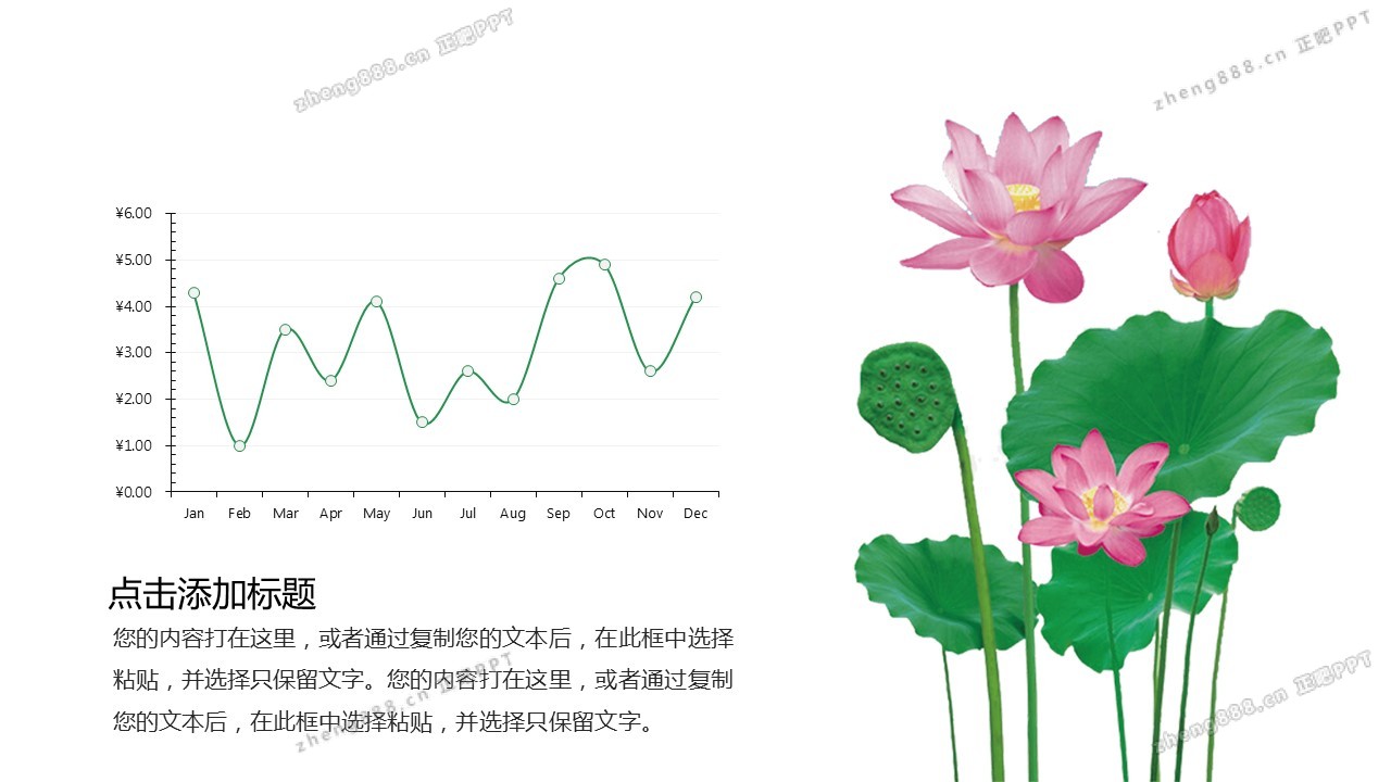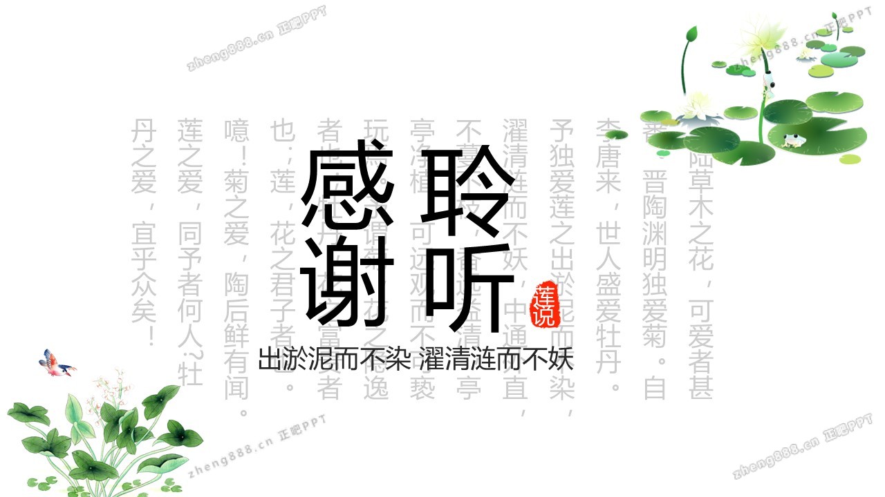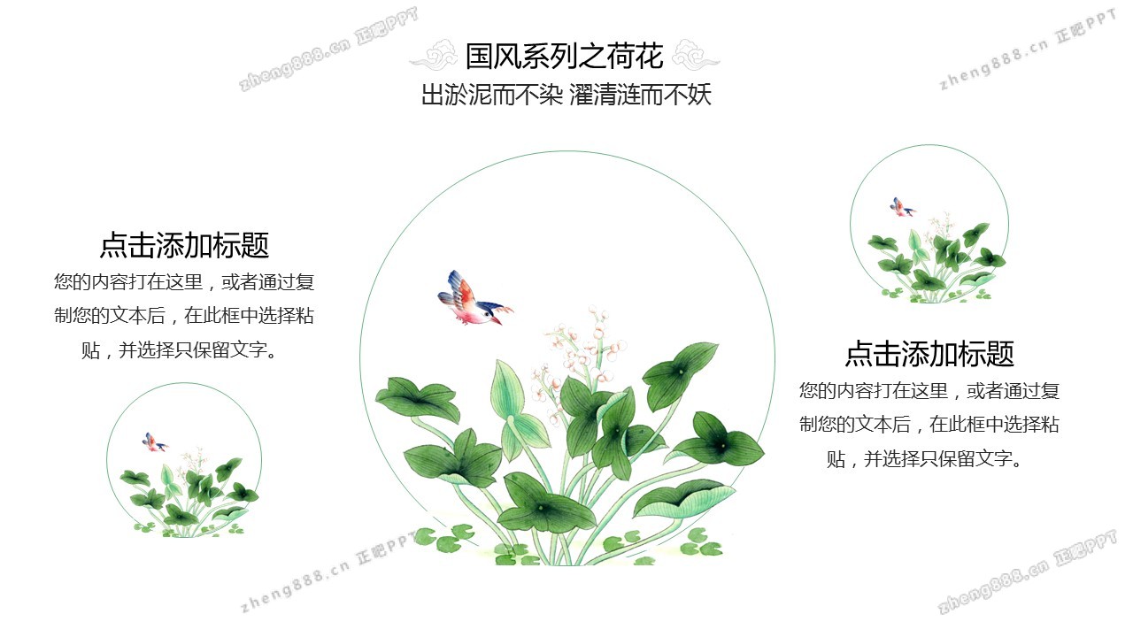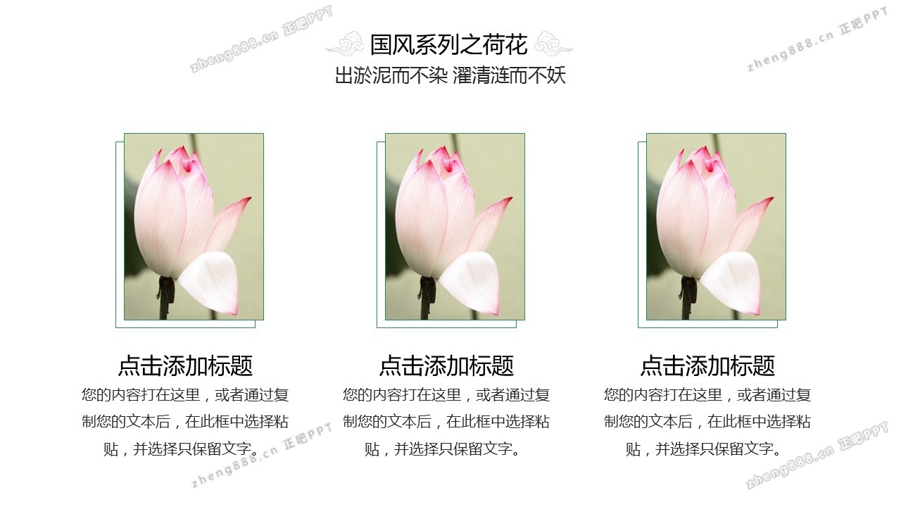矢量莲花背景的清新中国风PPT模板