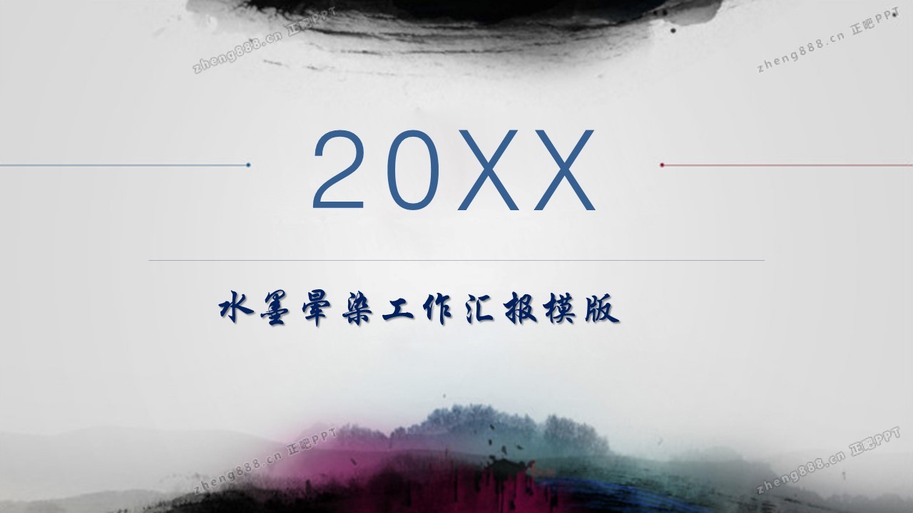 简洁墨迹晕染中国风工作汇报PPT模板