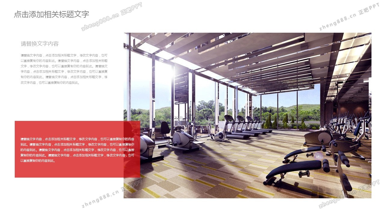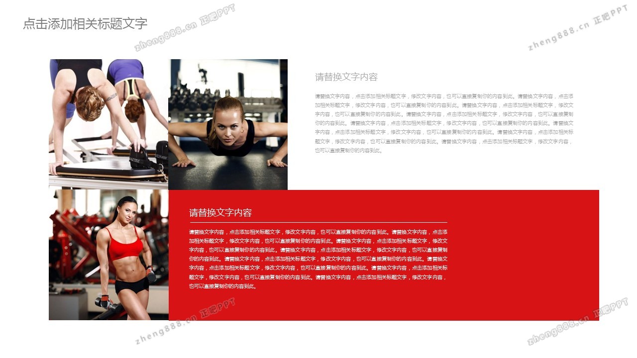 红色扁平化健身行业PPT模板