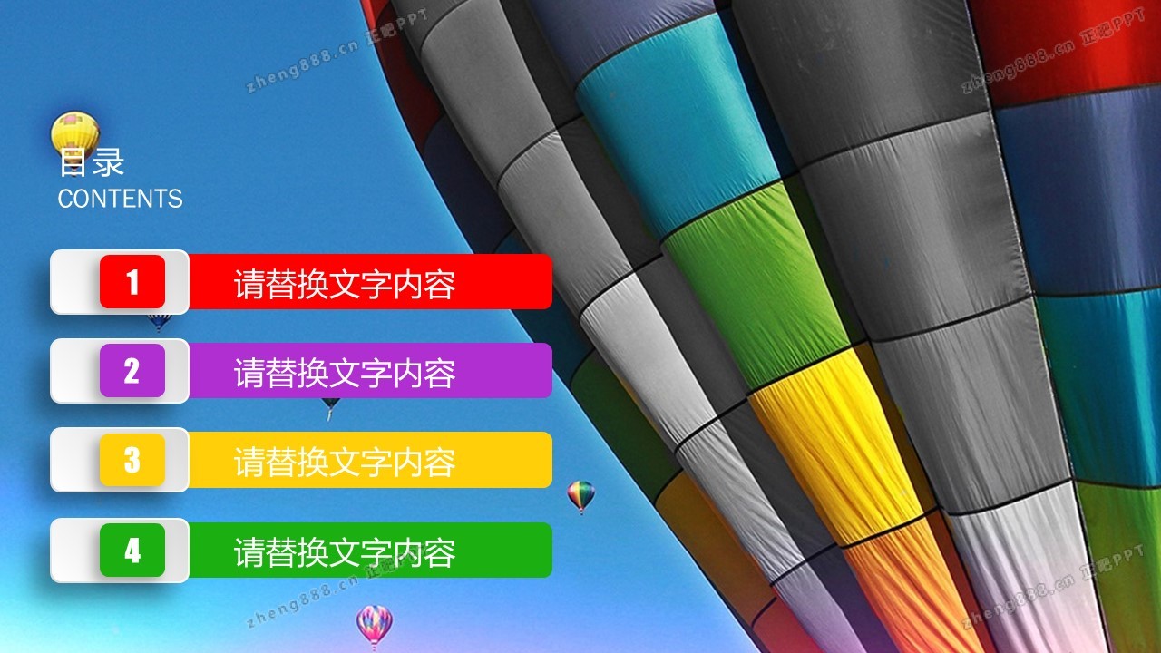彩色热气球背景的实用工作总结PPT模板