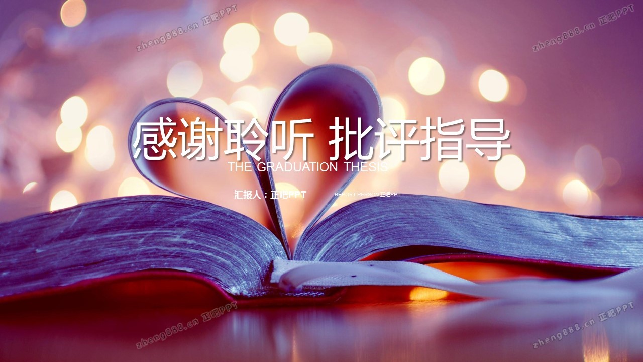 紫色爱心折纸背景的毕业论文答辩PPT模板