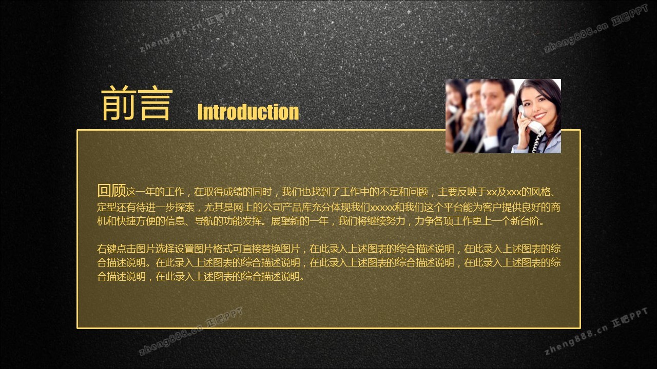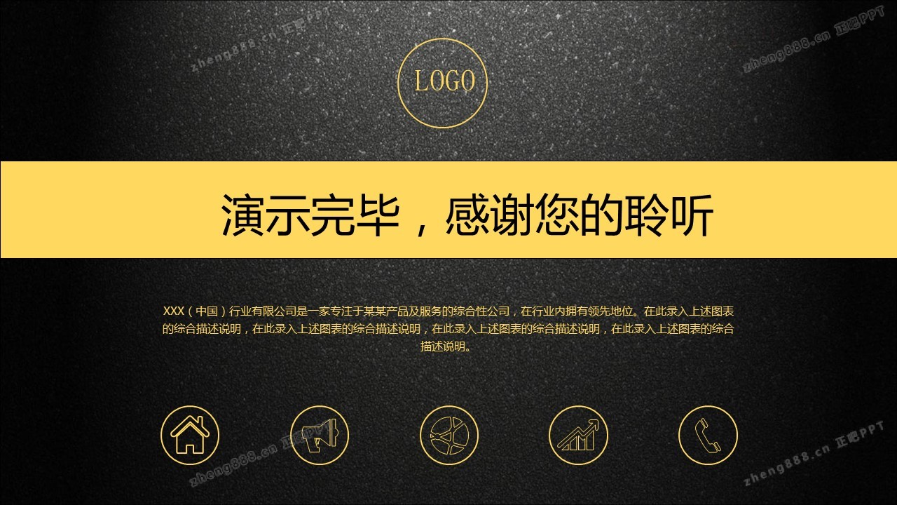 黑金磨砂质感的半透明商务企业简介PPT模板