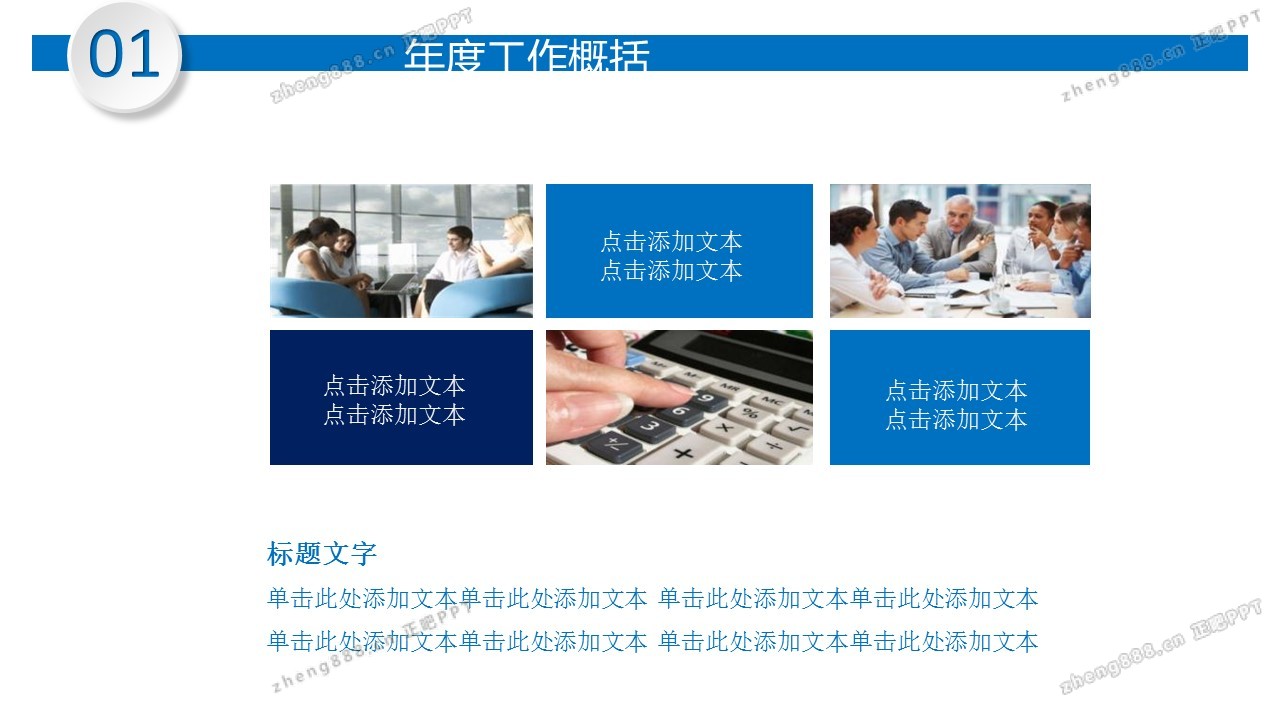 简洁蓝色扁平化年终工作总结PPT模板