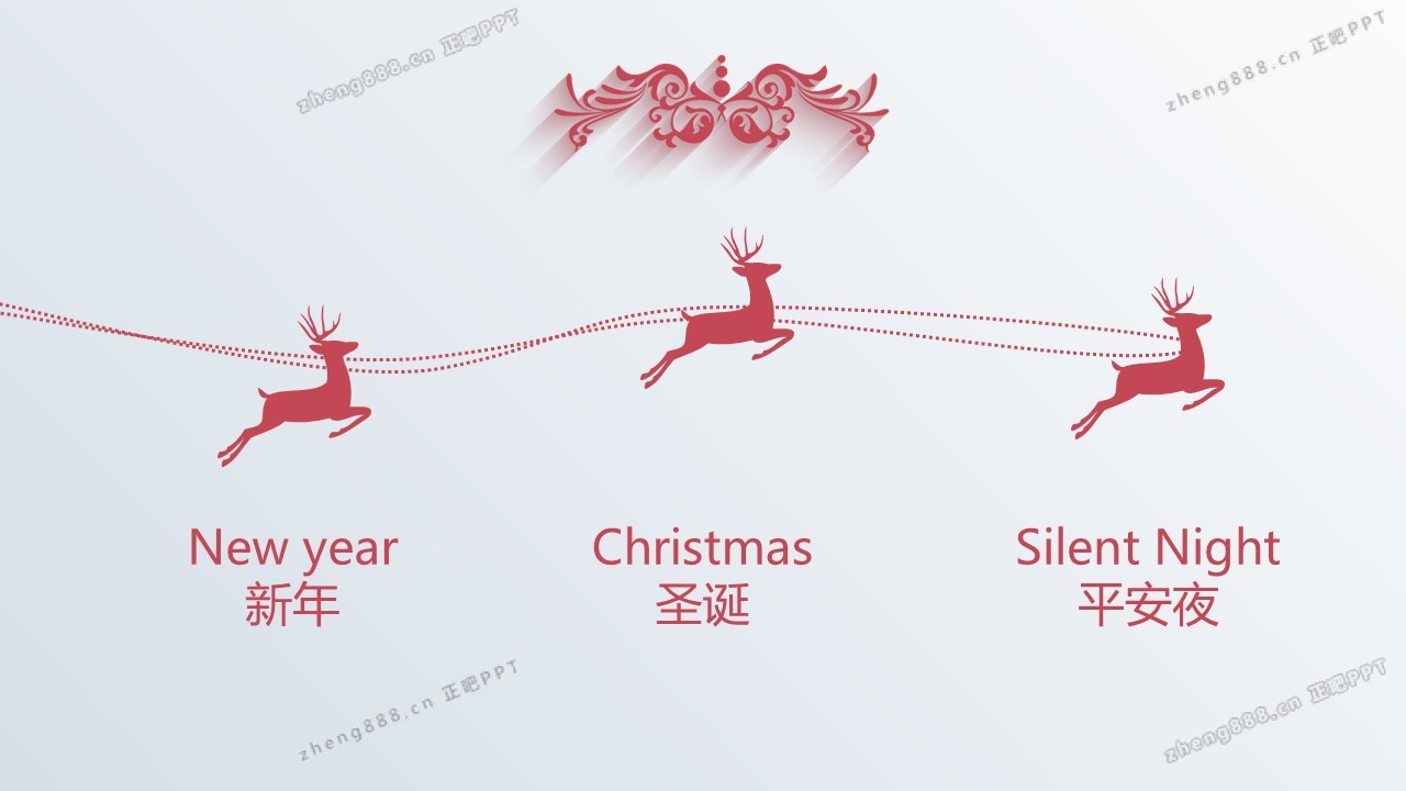 简洁驯鹿浮雕效果的圣诞节PPT模板