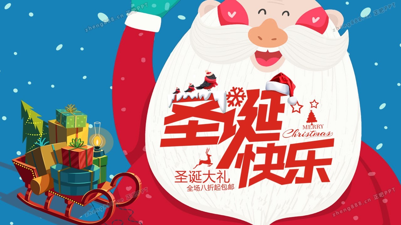 圣诞老人与雪橇背景的圣诞节PPT模板