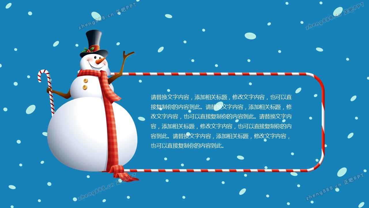 手绘雪地雪人背景的圣诞节PPT模板