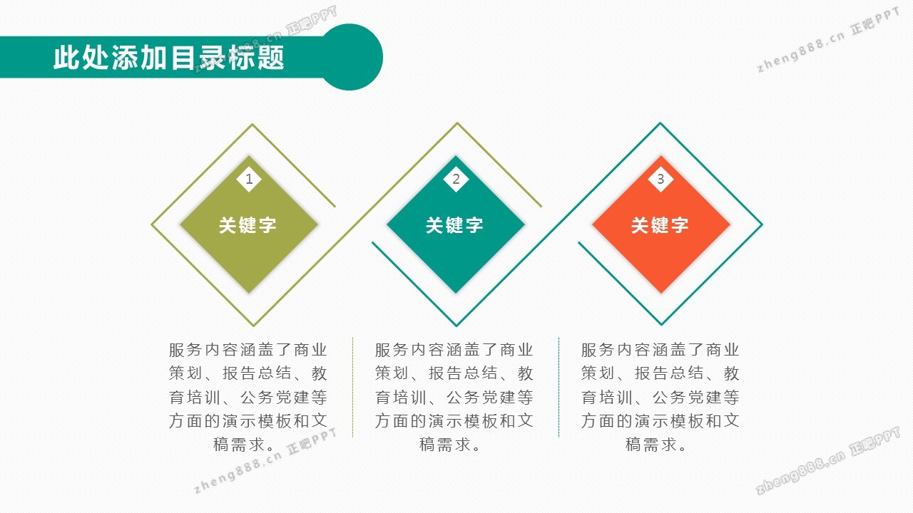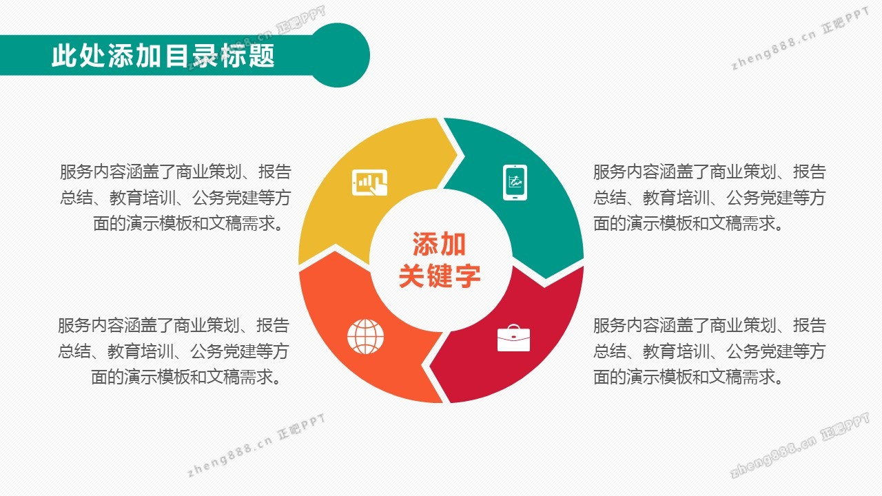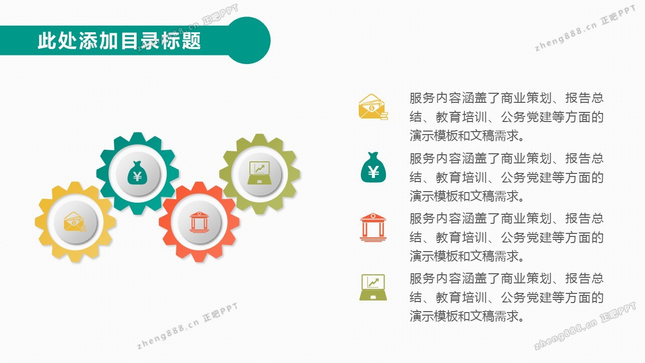 欢迎您访问【正吧PPT】,我们致力于为设计师和泛办公人群提供分享PPT作品。内容涵盖了商业策划、报告总结、教育培训、公务党建等方面的演示模板