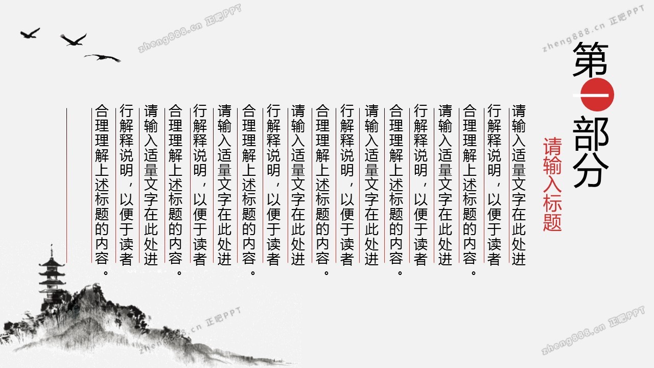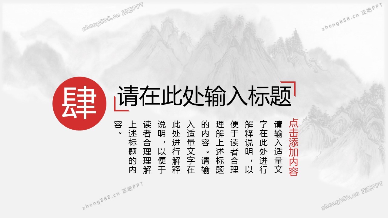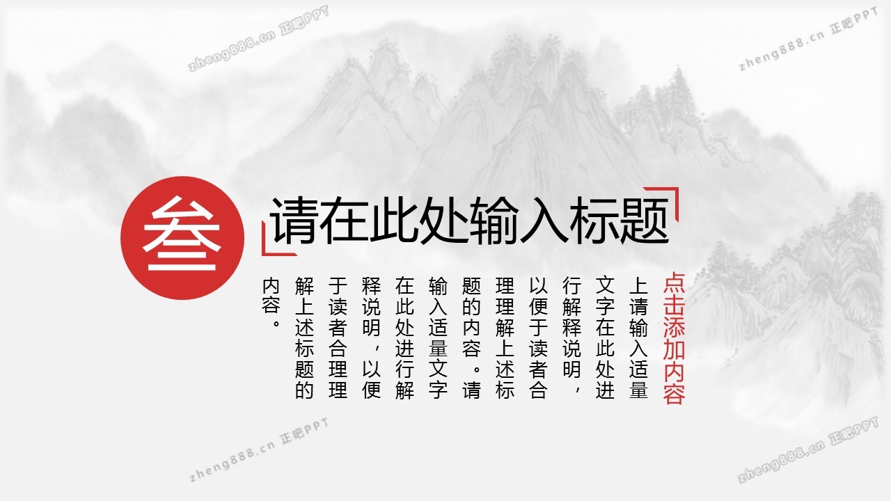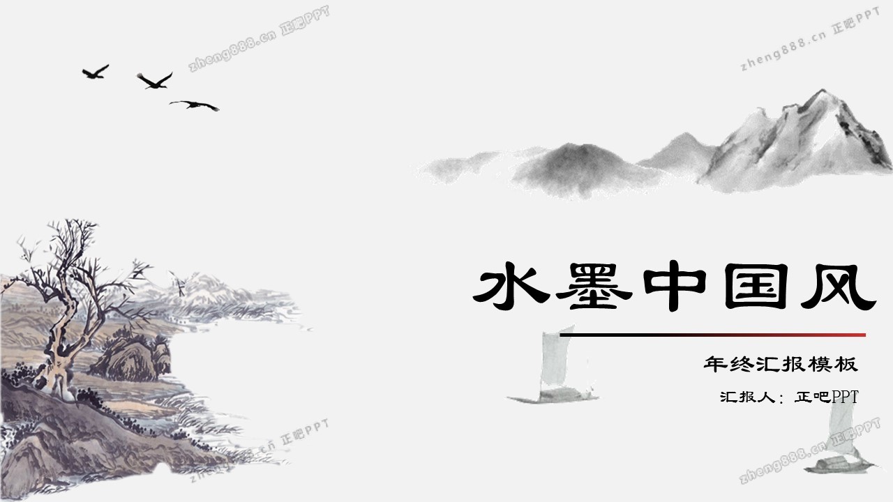 淡雅水墨山水背景的古典中国风PPT模板