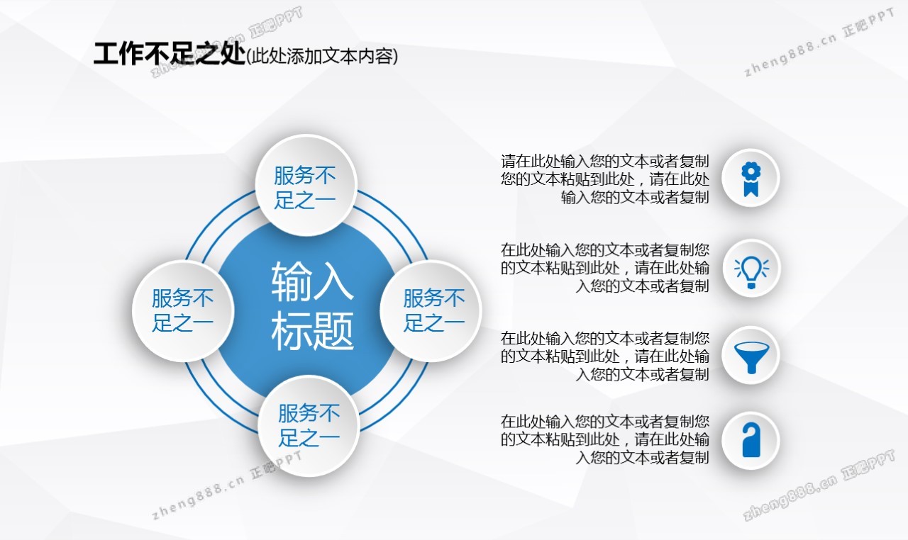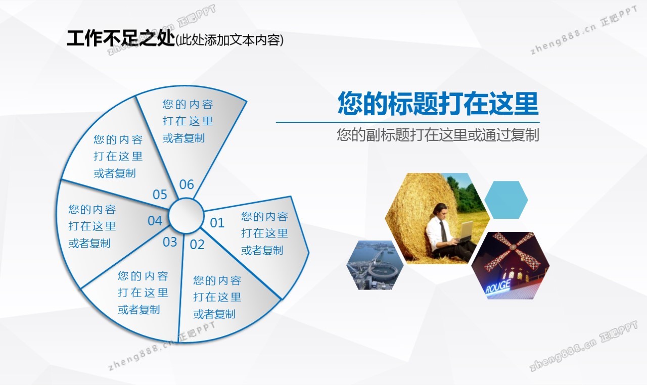 欢迎您访问【正吧PPT】,我们致力于为设计师和泛办公人群提供分享PPT作品。内容涵盖了商业策划、报告总结、教育培训、公务党建等方面的演示模板