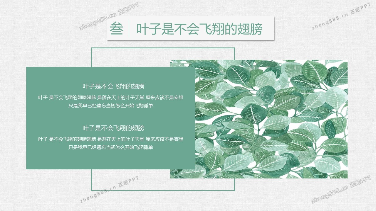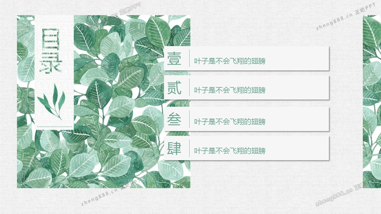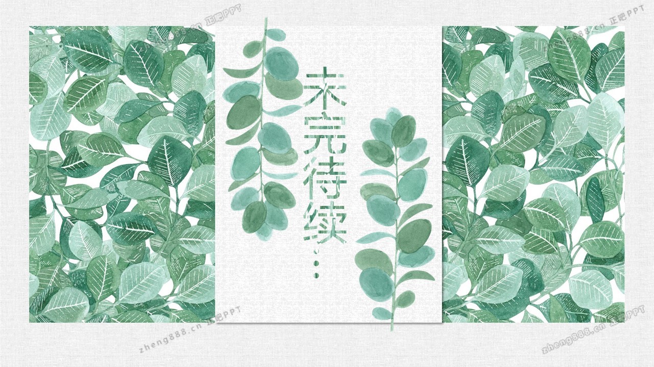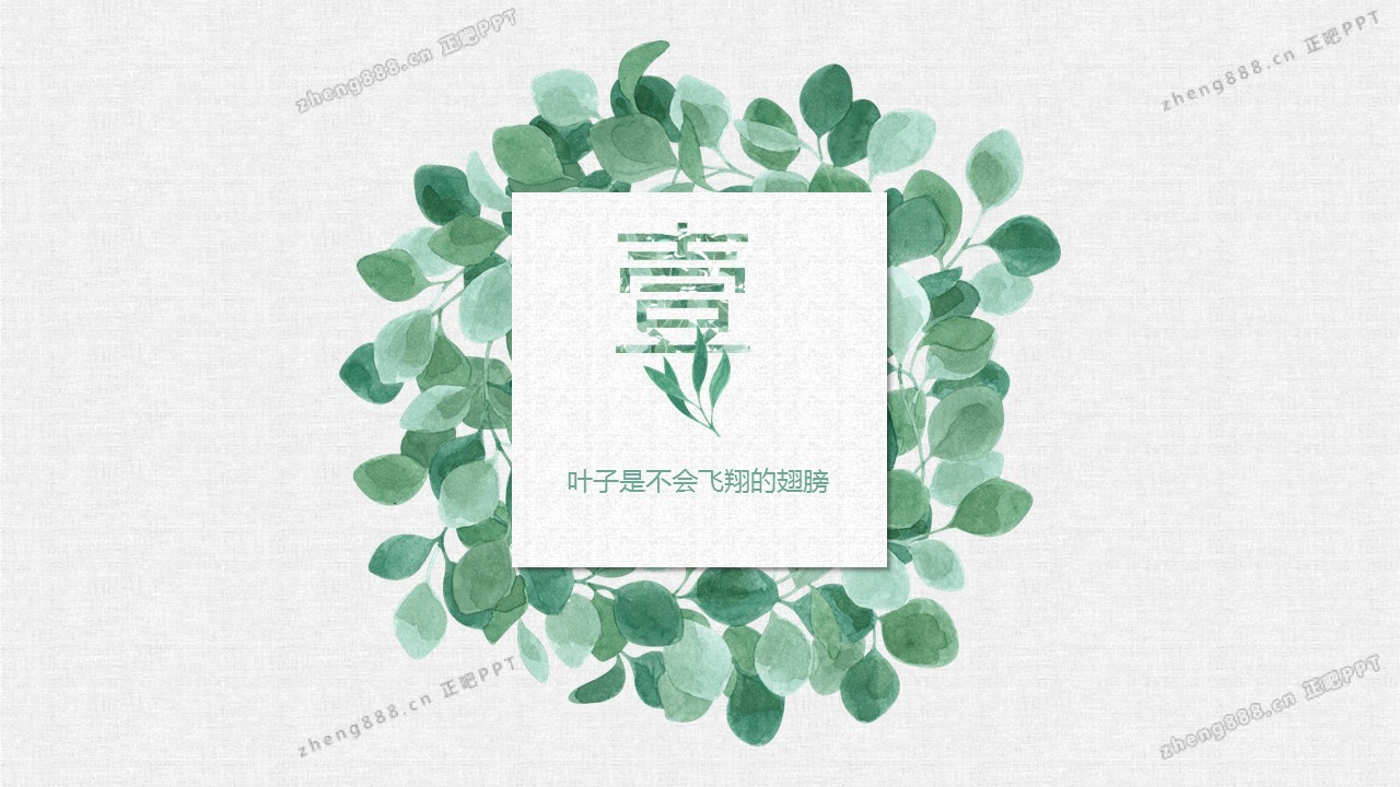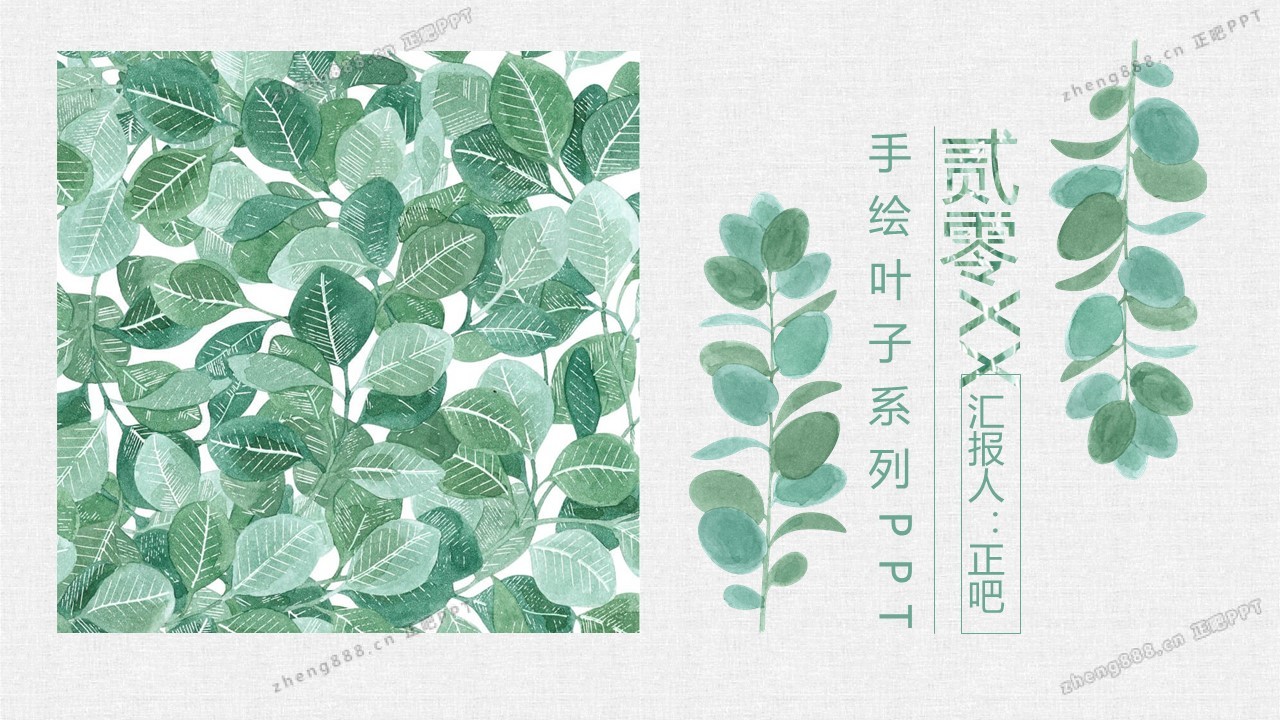 清新水彩手绘绿叶PPT模板