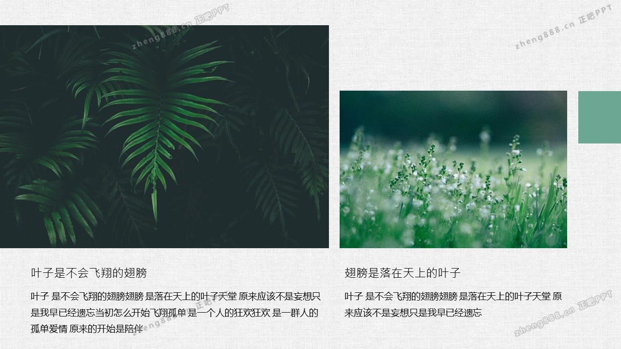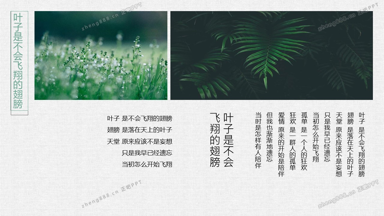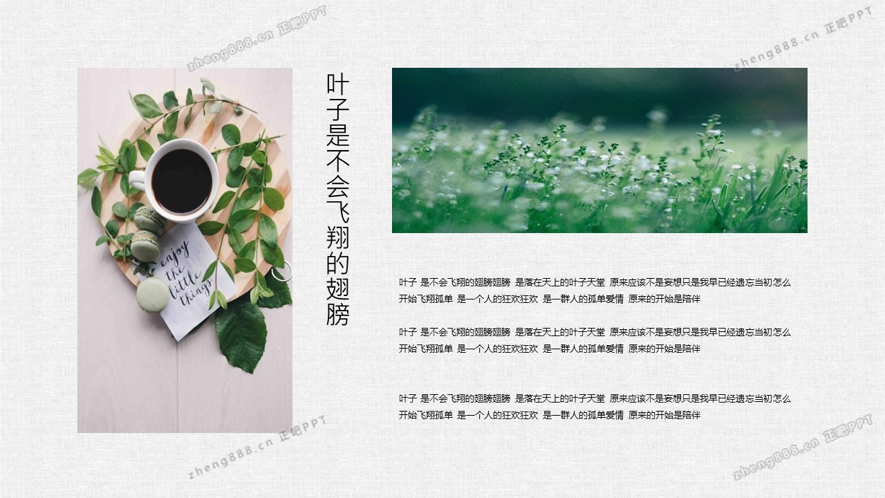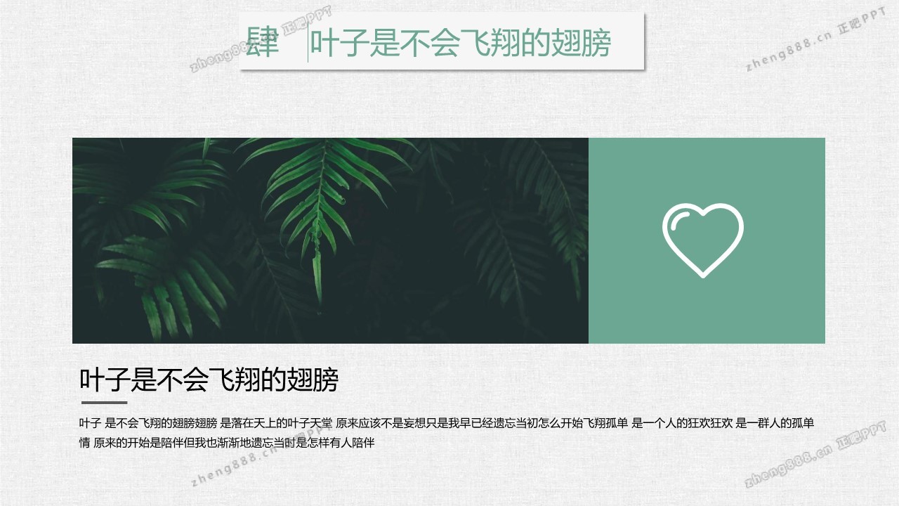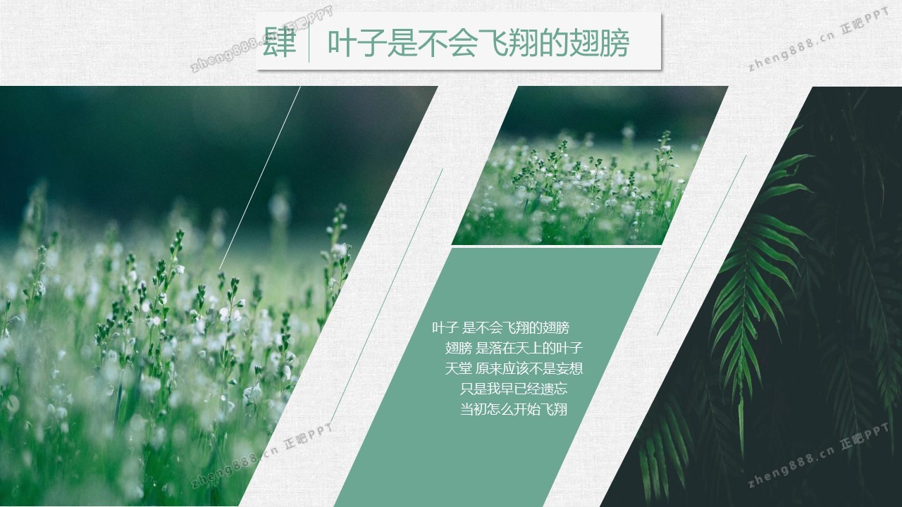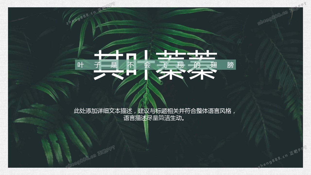 清新水彩手绘绿叶PPT模板