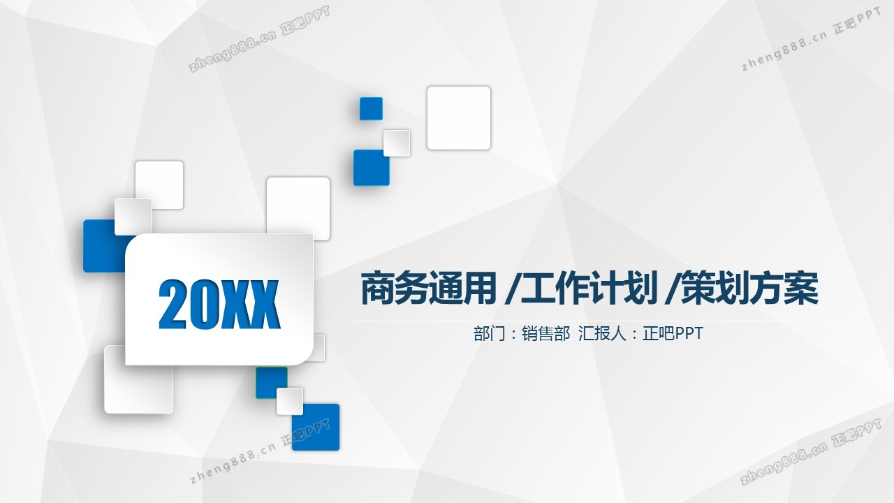 蓝色立体方块背景的通用商务PPT模板