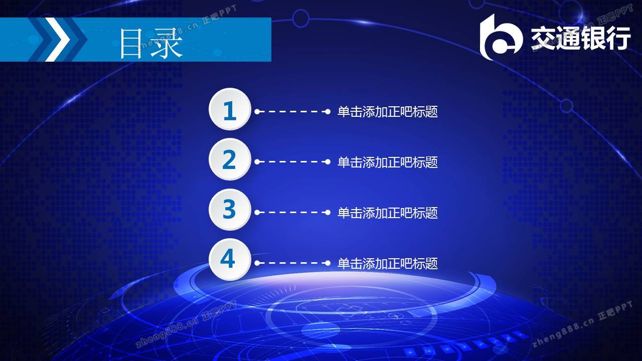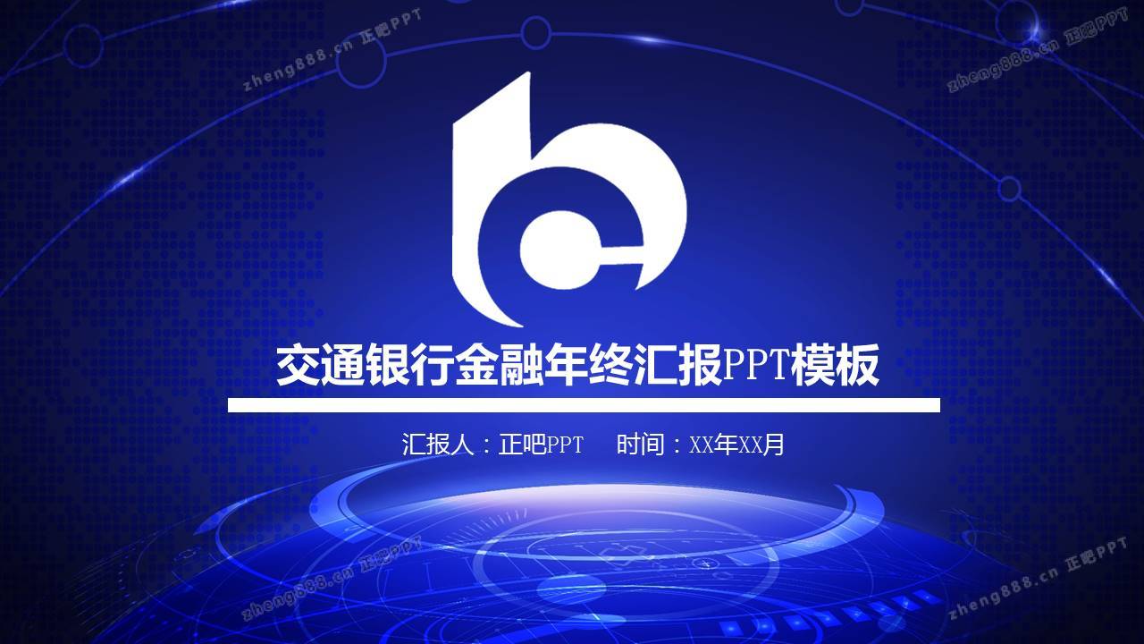 蓝色炫酷交通银行交行总结报告PPT模板