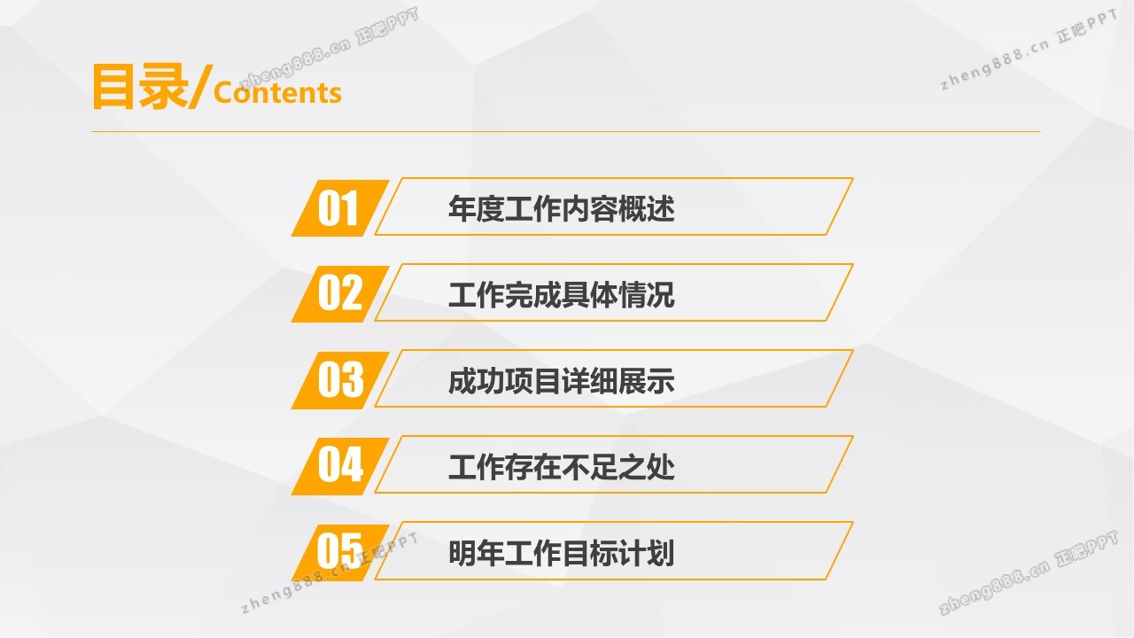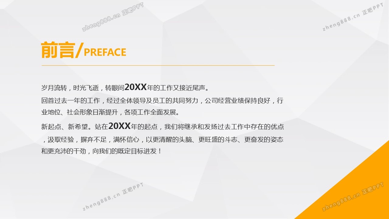橙色多边形年终总结汇报暨新年计划PPT模板