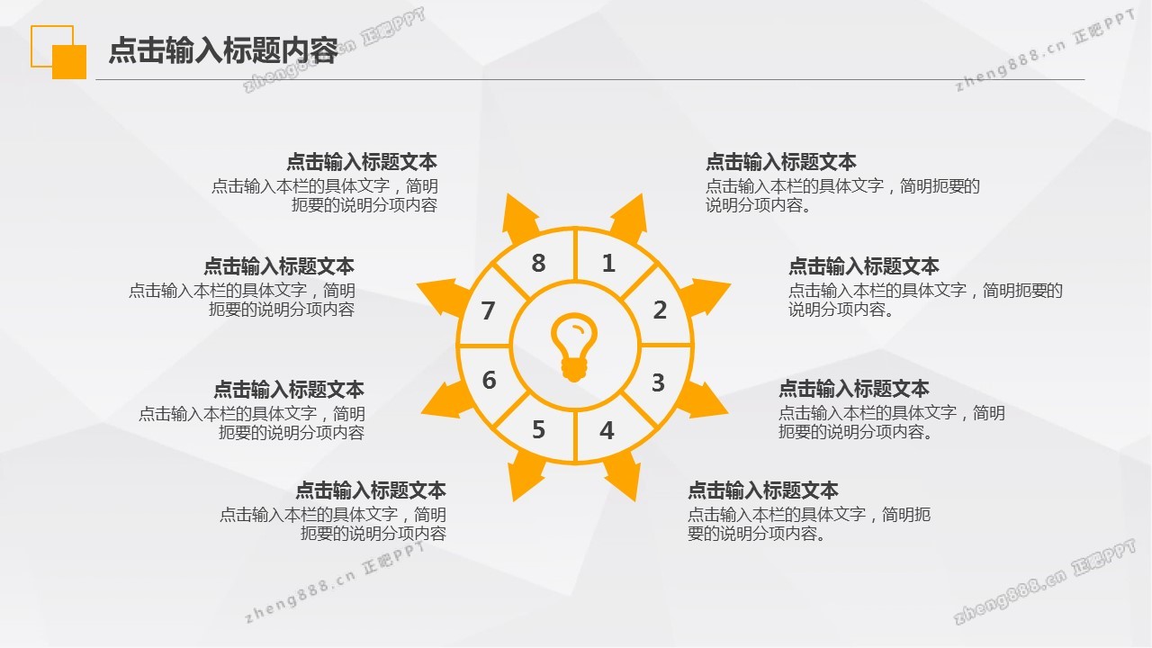 欢迎您访问【正吧PPT】,我们致力于为设计师和泛办公人群提供分享PPT作品。内容涵盖了商业策划、报告总结、教育培训、公务党建等方面的演示模板