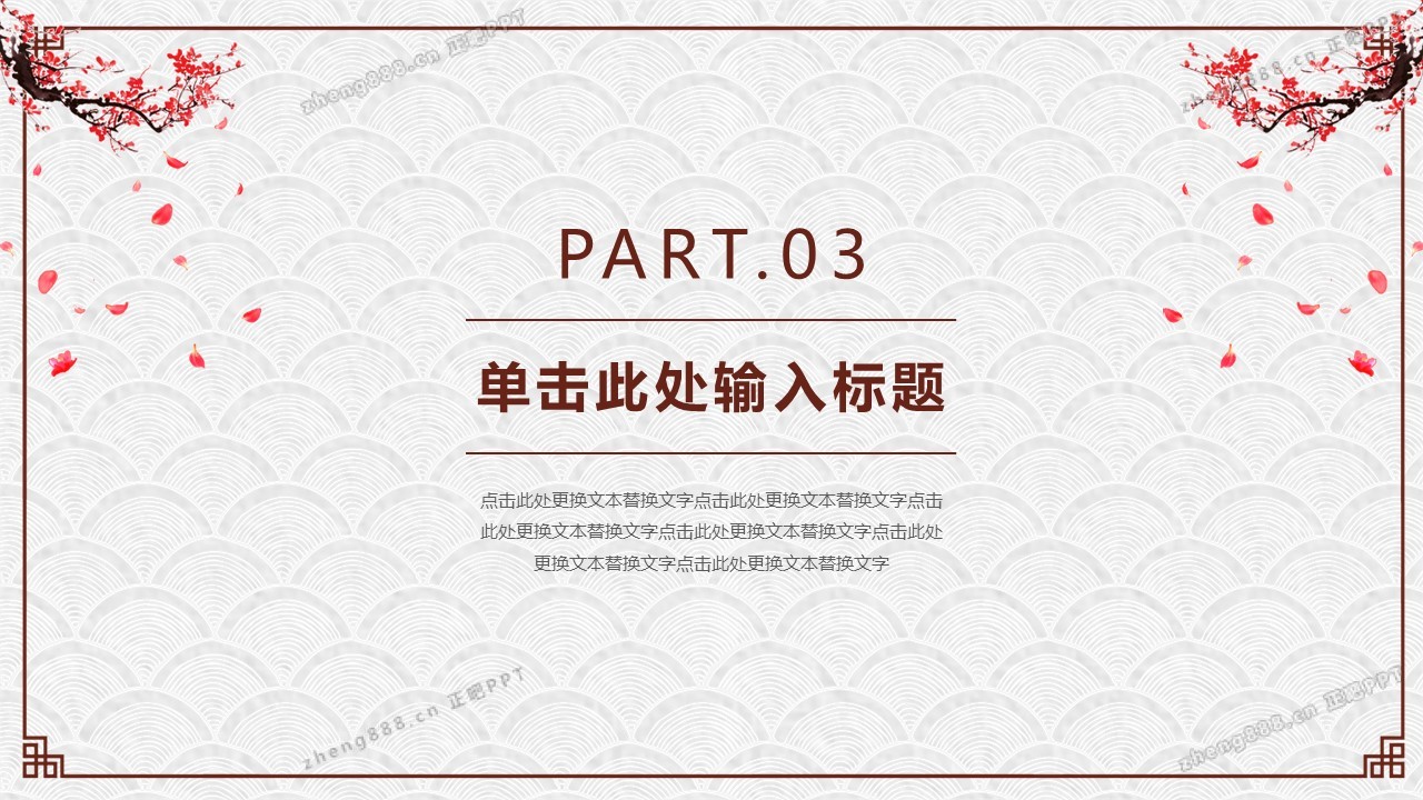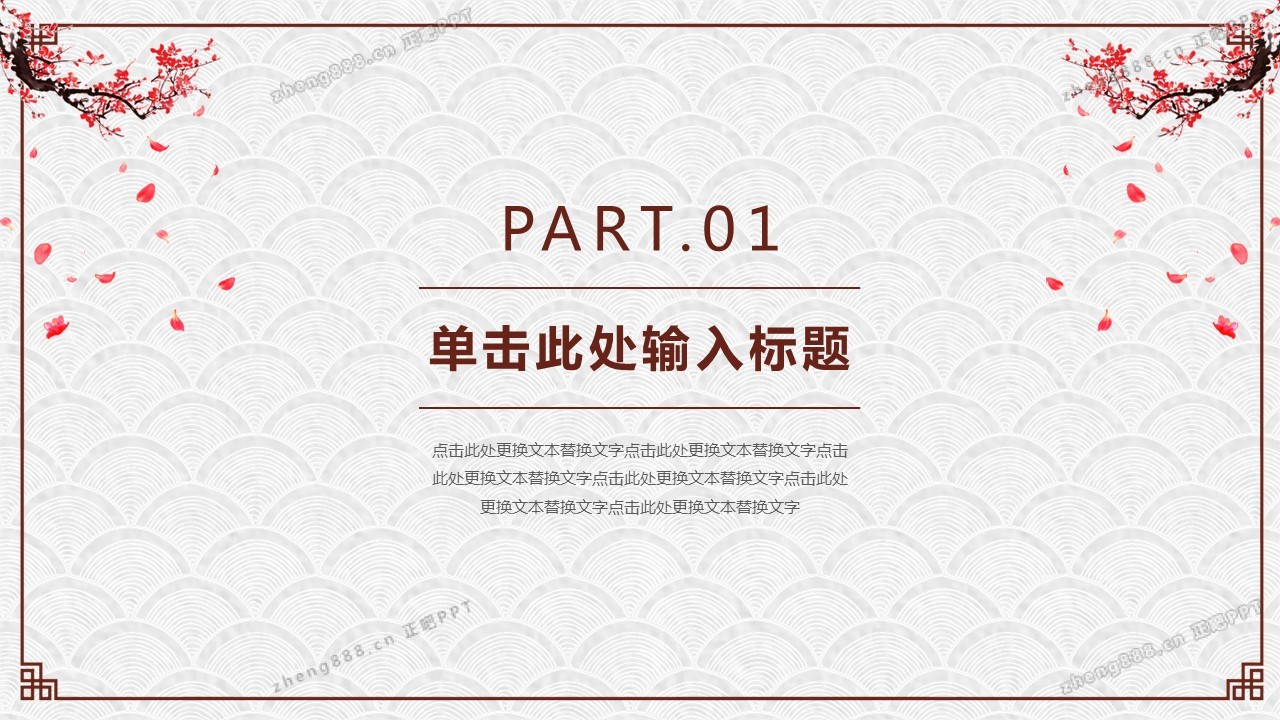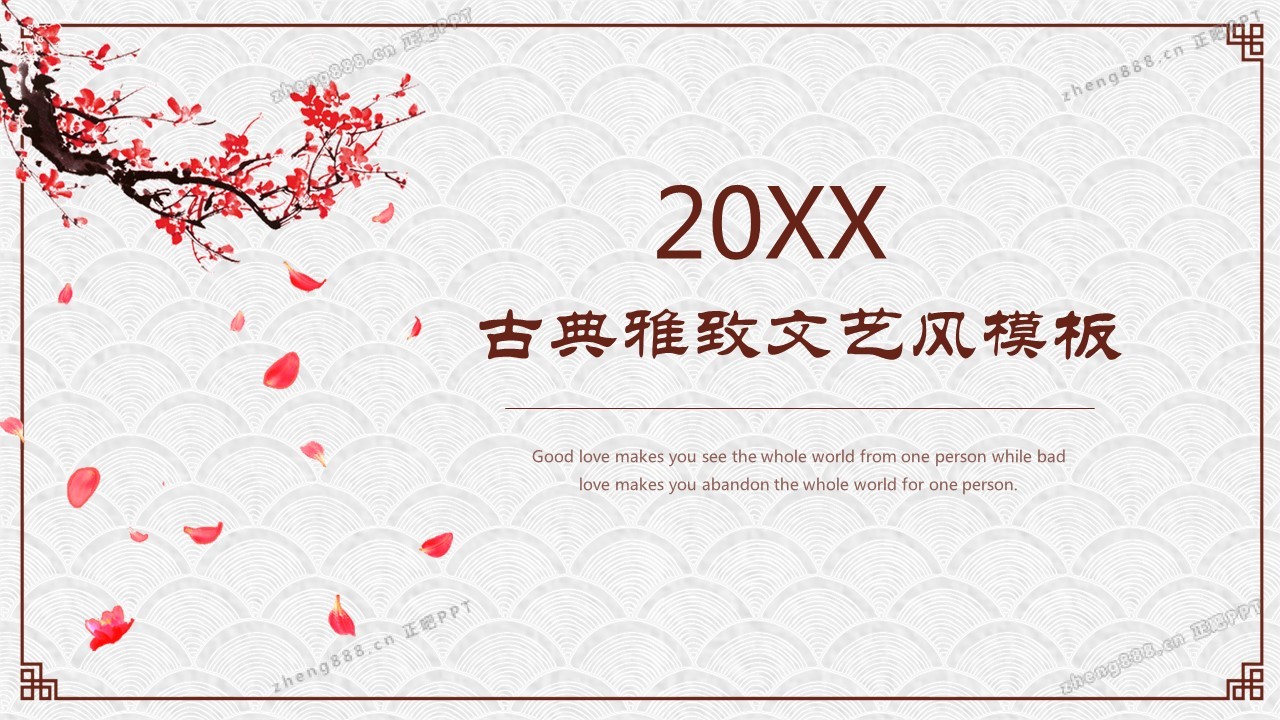 动态梅花背景的古典中国风PPT模板