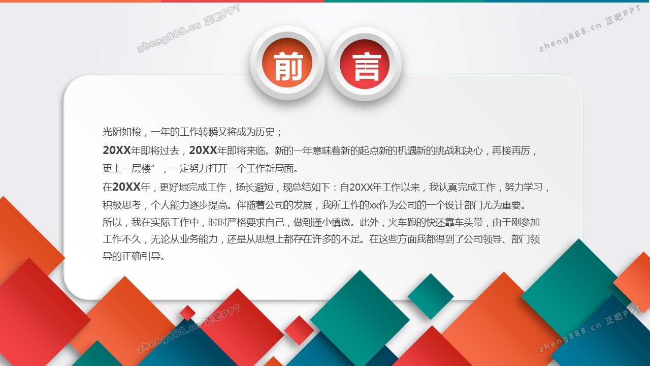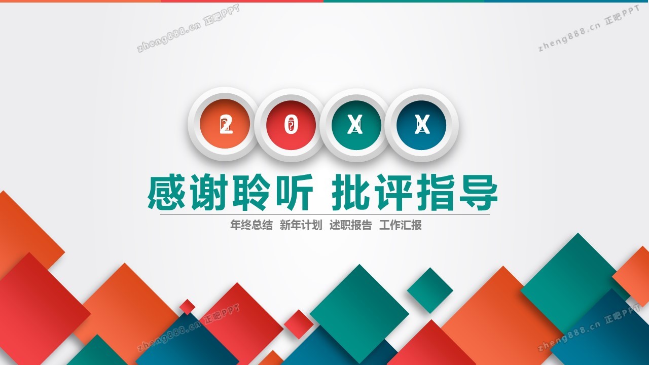 彩色方块背景的工作总结计划PPT模板