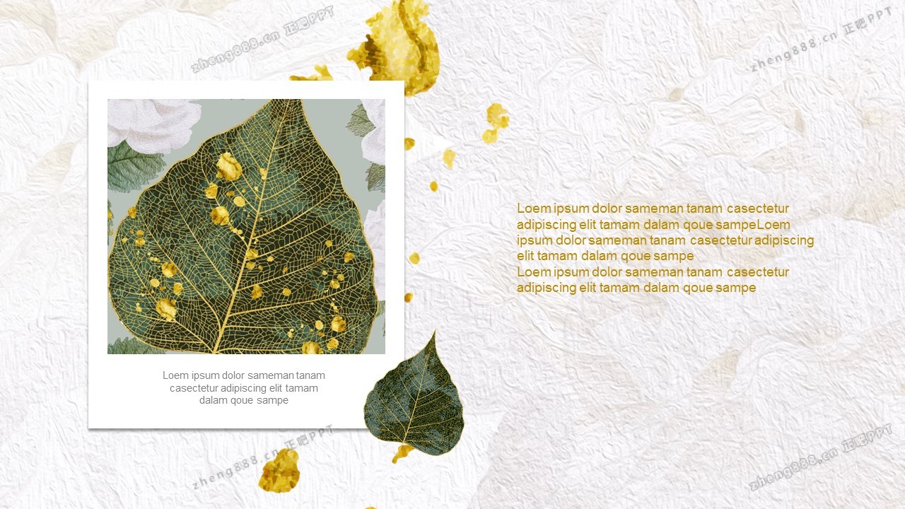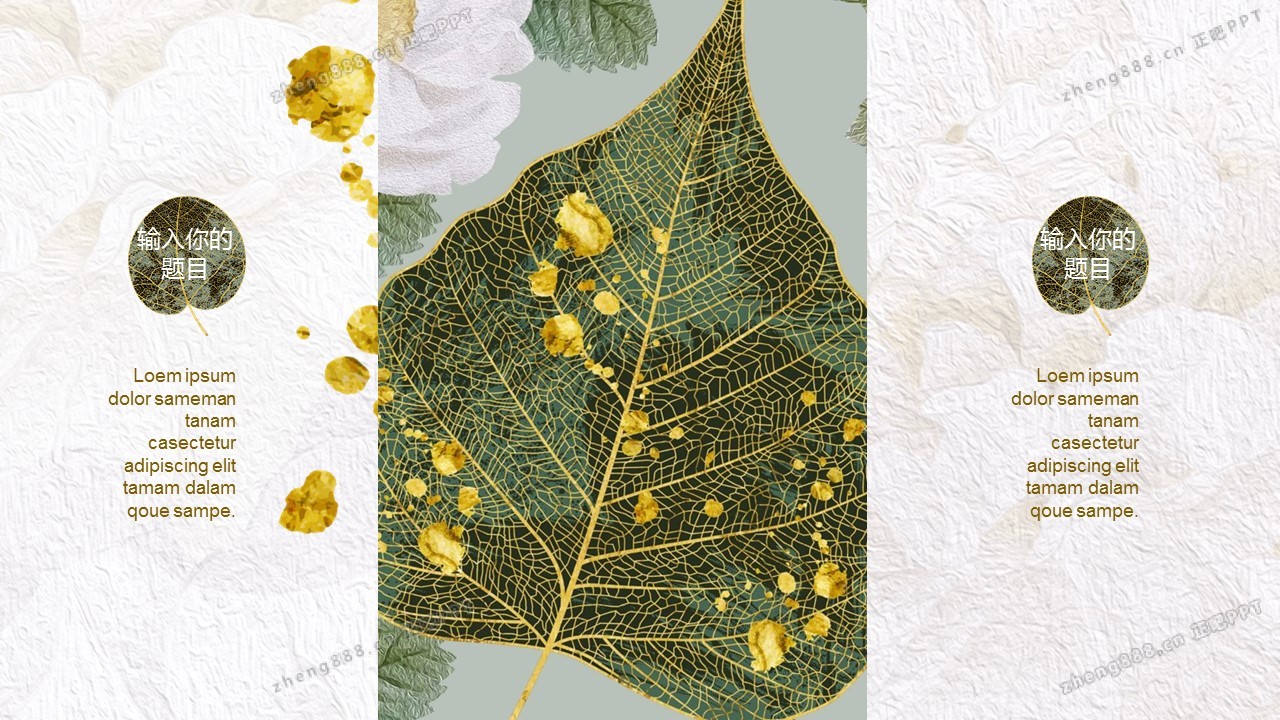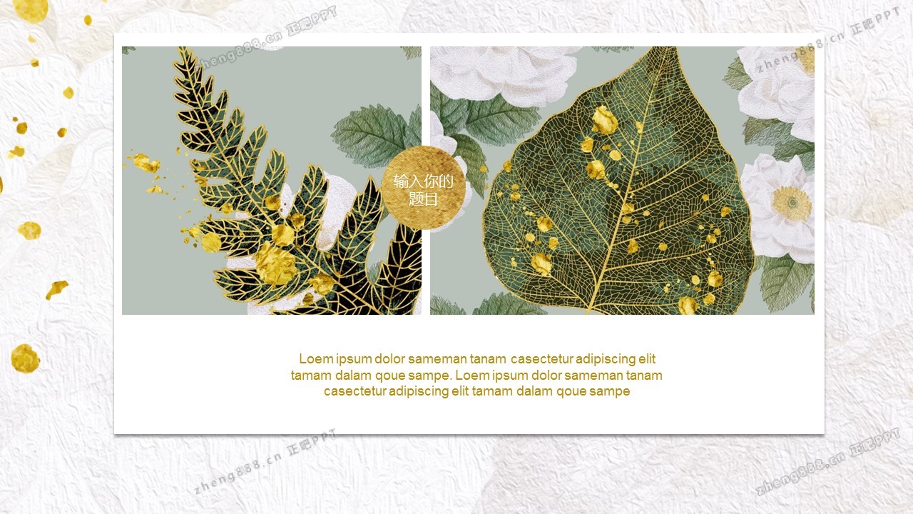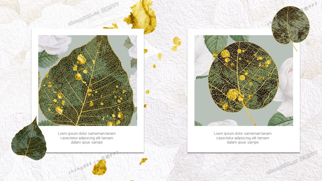 精美金边绿叶PPT模板