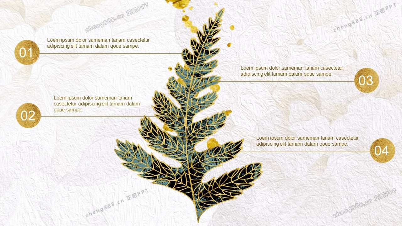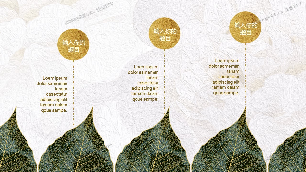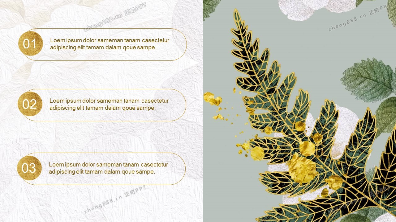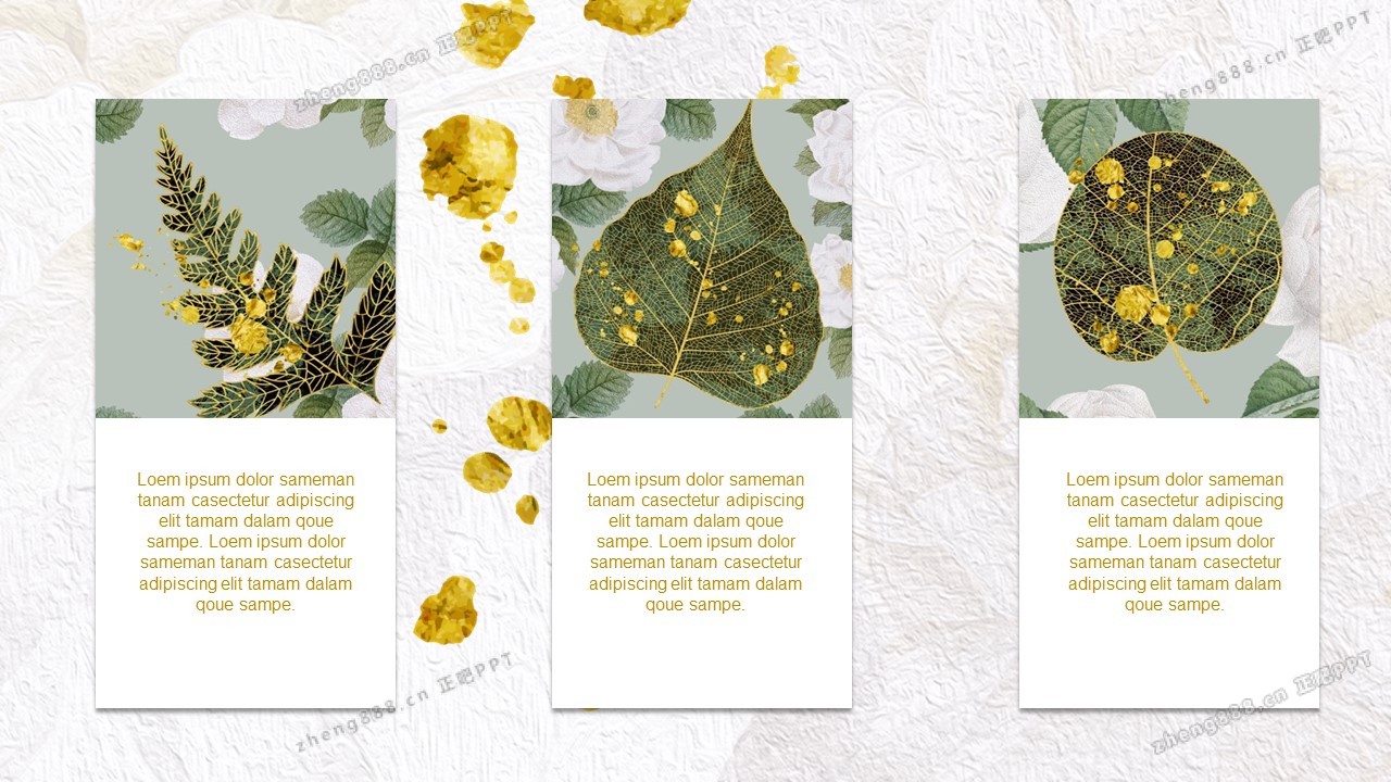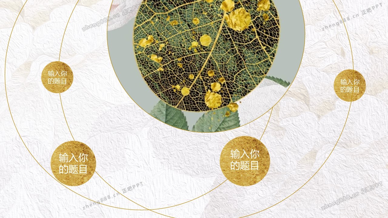 精美金边绿叶PPT模板